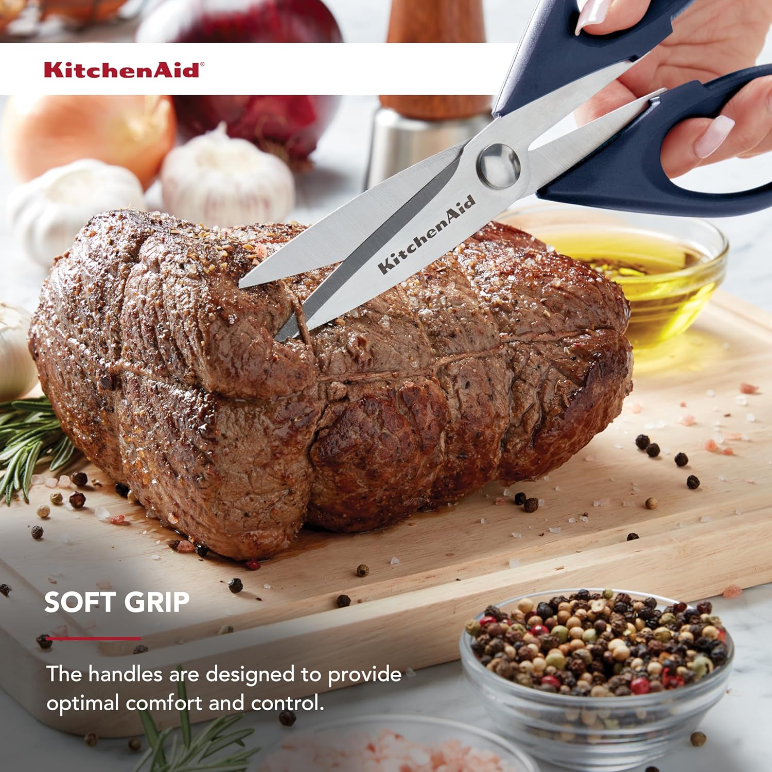 KitchenAid All Purpose Kitchen Shears with Protective Sheath Durable Stainless Steel Scissors, Dishwasher Safe, Soft Grip Comfort Handle, 8.72 Inch, Ink Blue