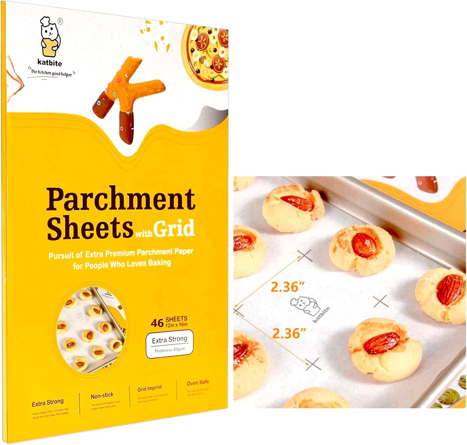 Katbite 12x16 Inch Parchment Paper Sheets with Grid Lines, Precut Baking Paper, Non-Stick & Heavy Duty, Half Sheet Parchment Paper for Cookies, Cup Cake Baking, Cooking, Air Fryer, Steaming, Grilling