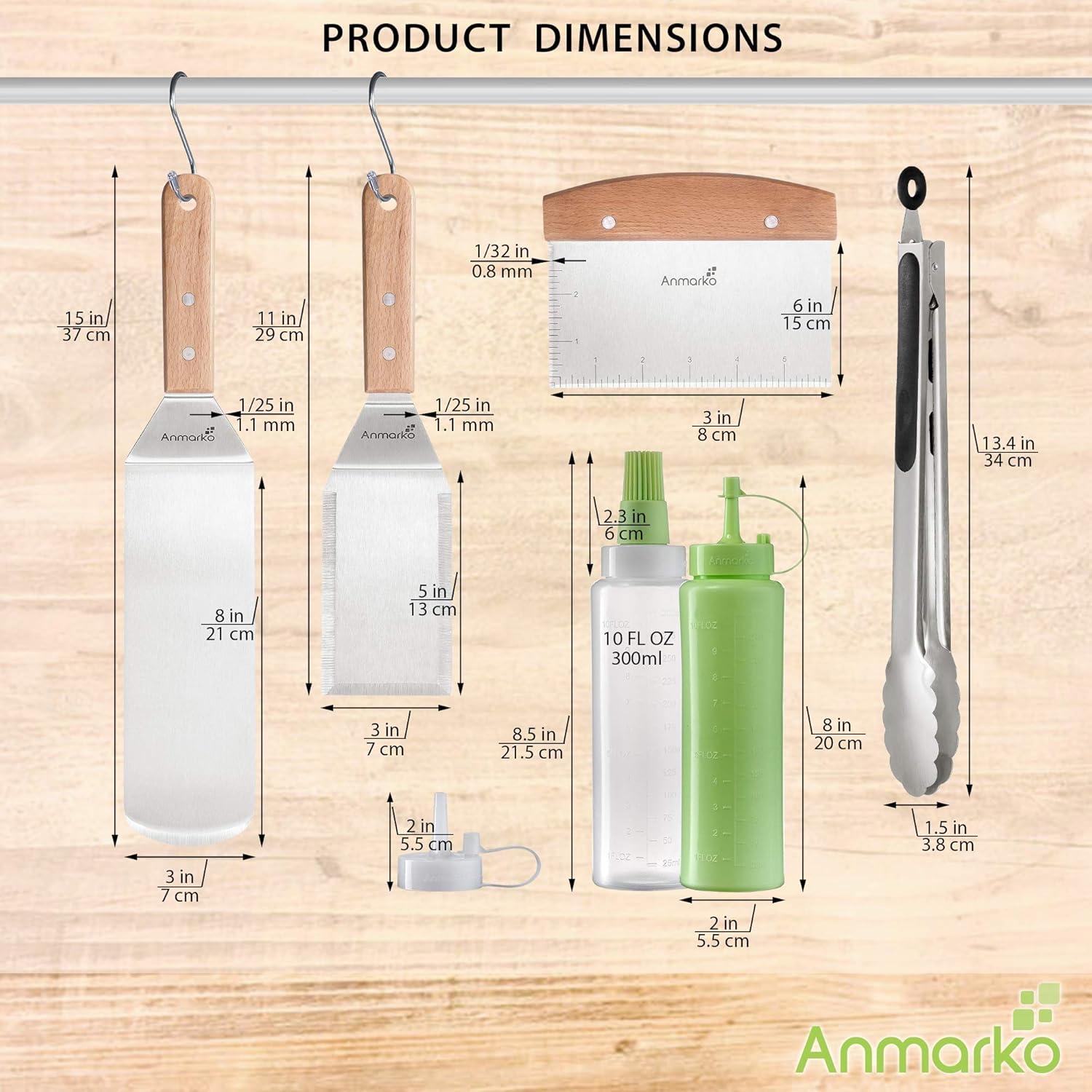 - Heavy duty & sturdy - griddle spatula set? is tough. The handle securely attached to metal spatula. These ?griddle grill accessories? are designed to last a lifetime. Stainless steel griddle spatula metal thickness is 1/25 inch.