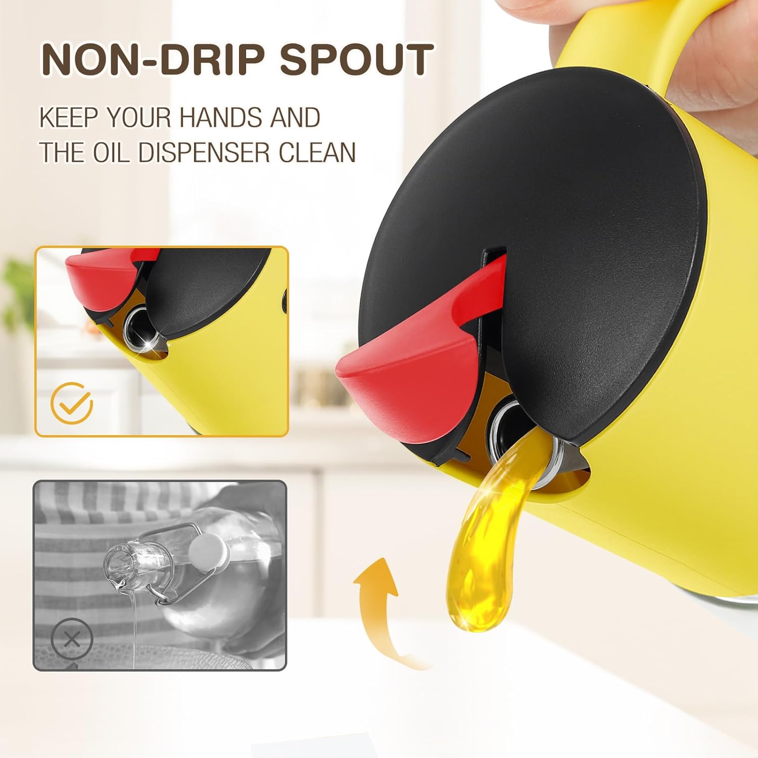 - No-Drip Spout & Leakproof Oil Bottle - Unique spout avoid dripping when the kitchen dispenser bottle is turned back and you can better control the amount of oil and no worry about over dressing. With leakproof silicone sealed gasket inside the cap to avoid leakage and spillage, ensure the freshness of liquid stored.