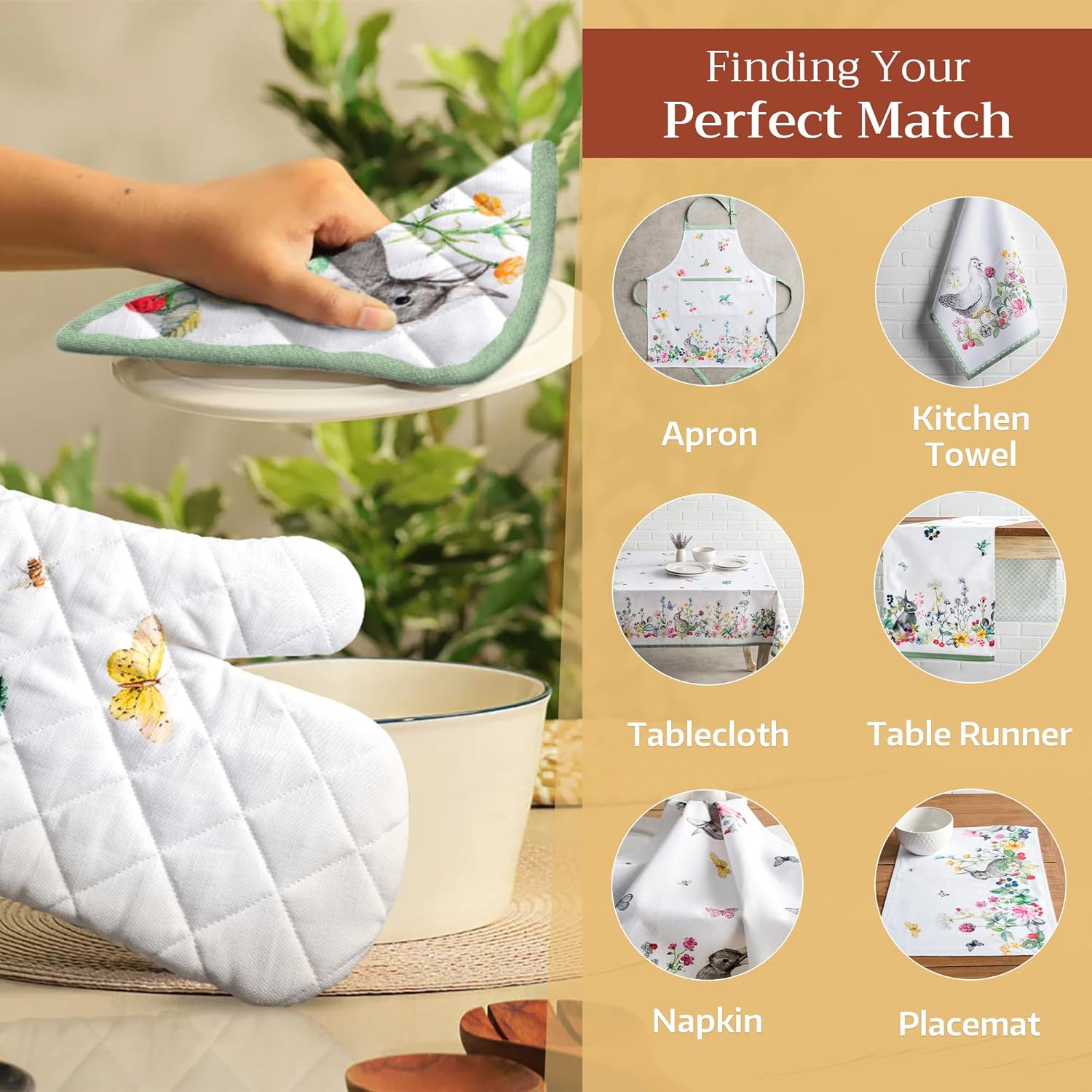 Maison d' Hermine Pot Holders Set 100% Cotton Heat Resistant Potholders 8" x 8" Hot Pads with Loop BBQ, Cooking, Baking, Grilling, Kitchen, Handling Hot Pans Spring/Summer (Pack of 2, Printemps)