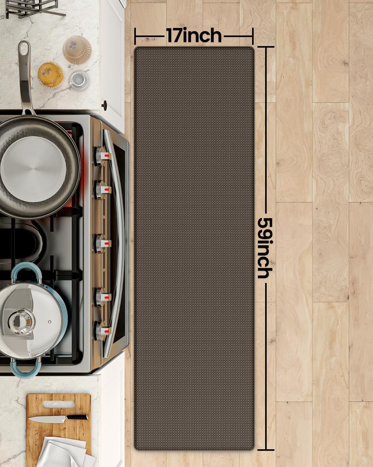 DEXI Kitchen Floor Mats Cushioned Anti Fatigue, 17x59, Standing Runner Rug Waterproof, Comfort Memory Foam Padded for Front Sink Laundry, Brown