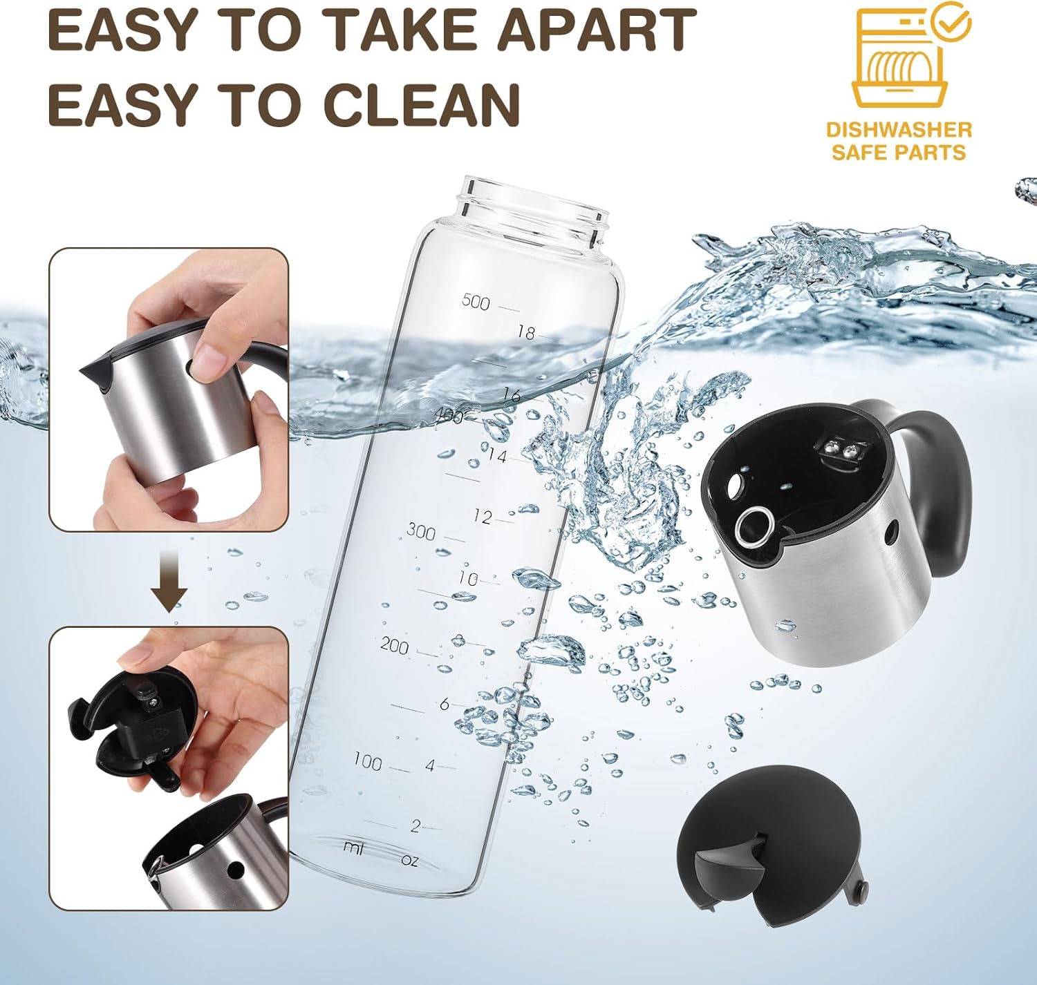 Vucchini Large Olive Oil Dispenser Bottle 17 oz - Auto Flip Condiment Container - Leakproof Vinegar Dispenser Glass Cruet Stainless Steel