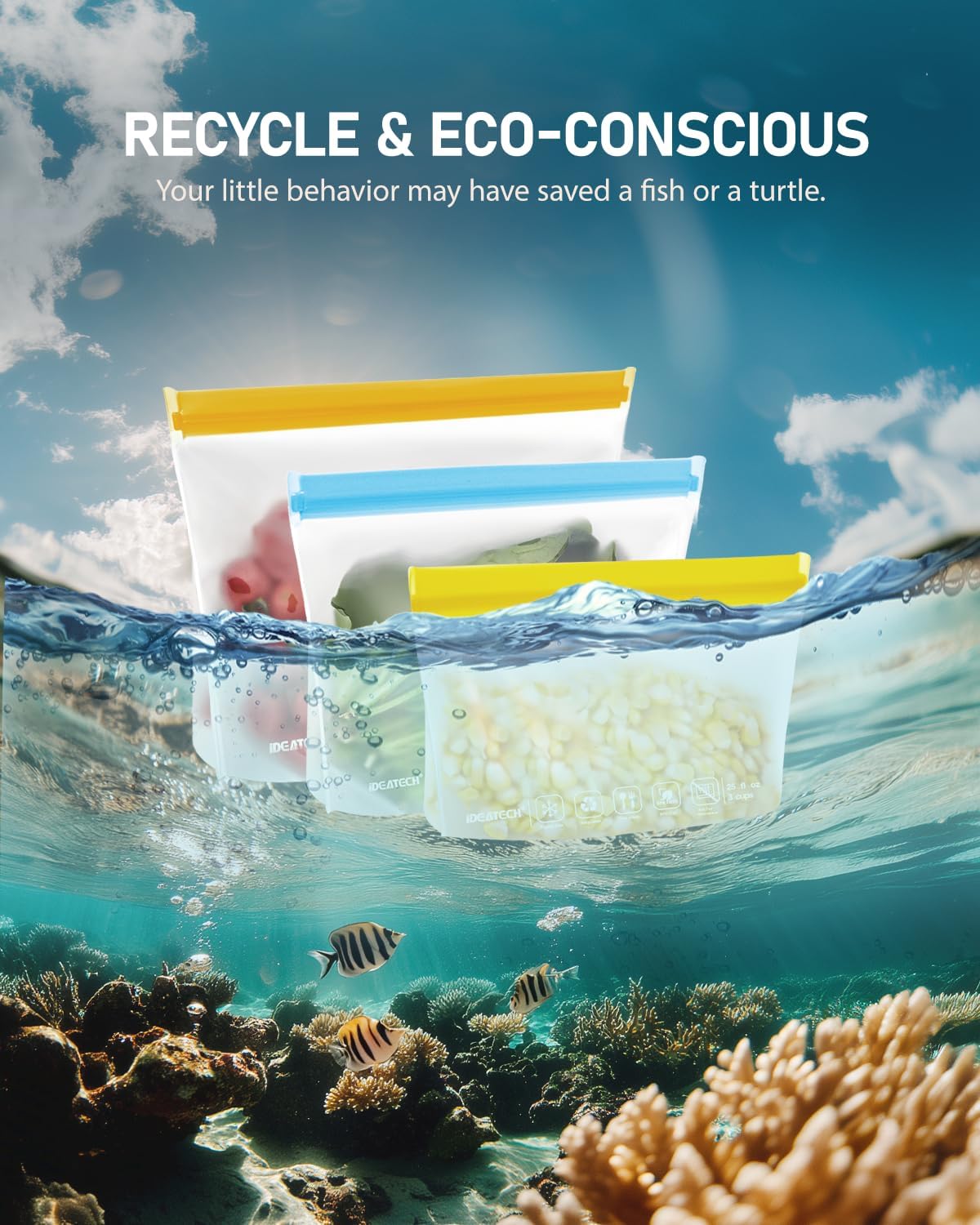 IDEATECH 8Pack Gallon Bags Dishwasher Safe, Leakproof Reusable Gallon Freezer Bags, BPA Free Reusable Gallon Bags, Reusable Food Storage Bags Silicone for Meats, Sandwich, Travel (8Gallon, Colored)