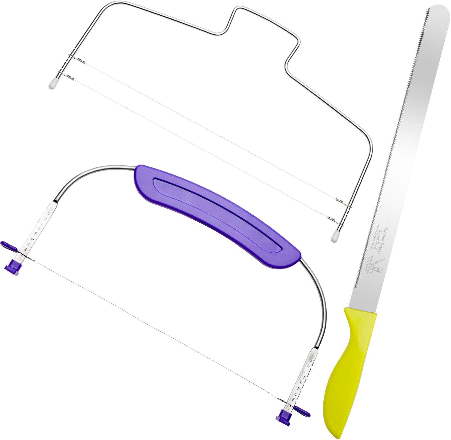 Boao 3 Pieces Kitchen Baking Tools, Adjustable Cake Levelers, Double Wire Cake Slicer Levelers and Stainless Steel Knife with Plastic Handle for Wedding Birthday Leveling and Molding