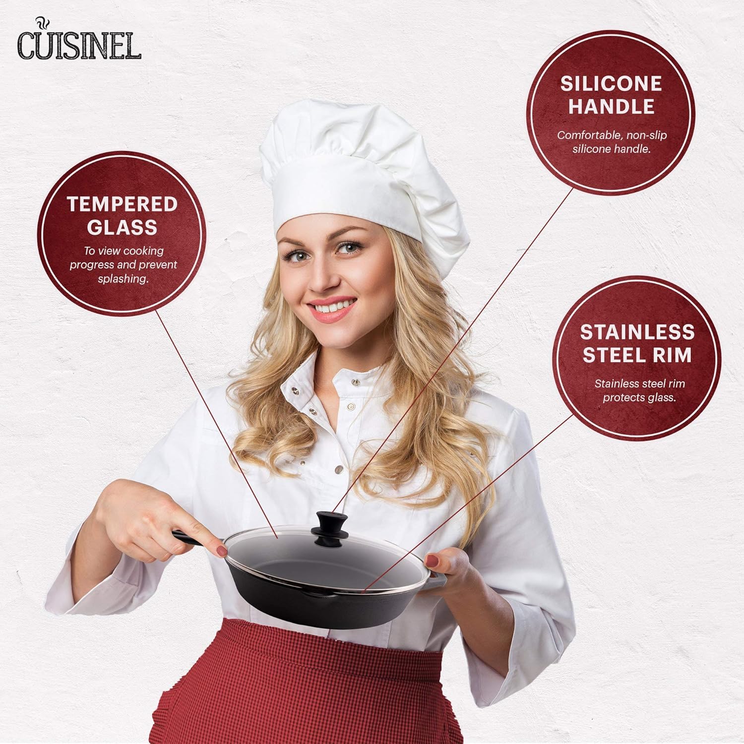 - OVEN-SAFE TEMPERED GLASS: Thermal reinforced glass is much safer and more durable than regular glass. Oven-safe up to 350-Degrees ° F make this sturdy replacement cover an essential part of your cookware accessories collection. Tempered glass can withstand drastic temperature changes and won't shatter under pressure. Transparent glass lids allow you to flaunt luxurious photo-perfect dishes in progress.