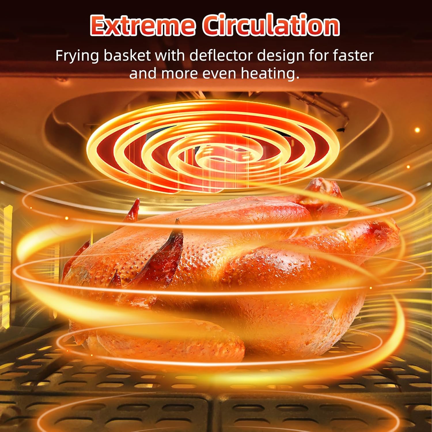 - 🍕Large Capacity: You can easily use 5.8QT / 5.5L air fryer to fry a 5 lbs-6 lbs whole chicken, bake a delicious cake, fry delicious steak and chicken drumsticksand, or cook other large foods for a big party. Providing enough food for 2–8 people.