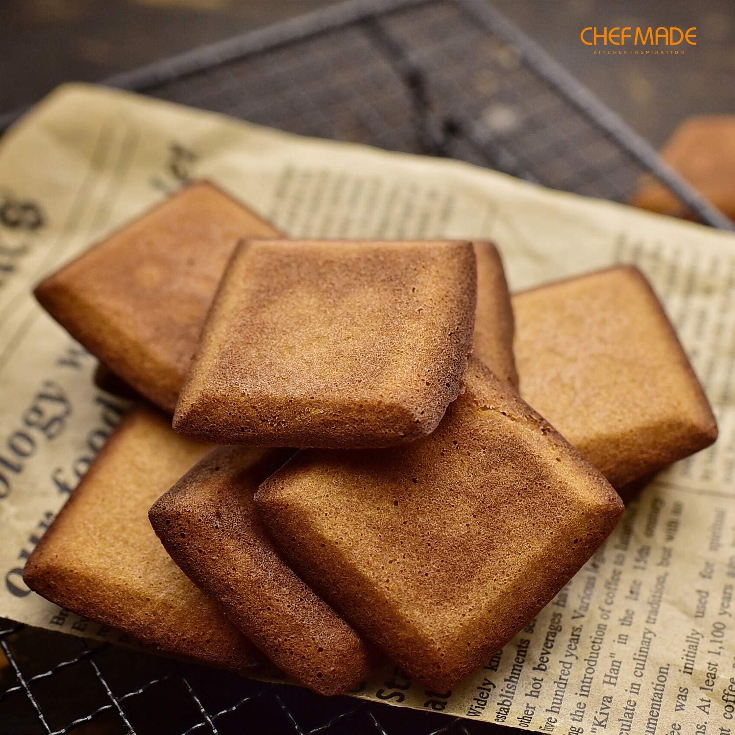 CHEFMADE Financier Cake Pan, 12-Cavity Non-Stick Square Muffin Pan Biscuits Cookies Bakeware for Oven Baking (Champagne Gold