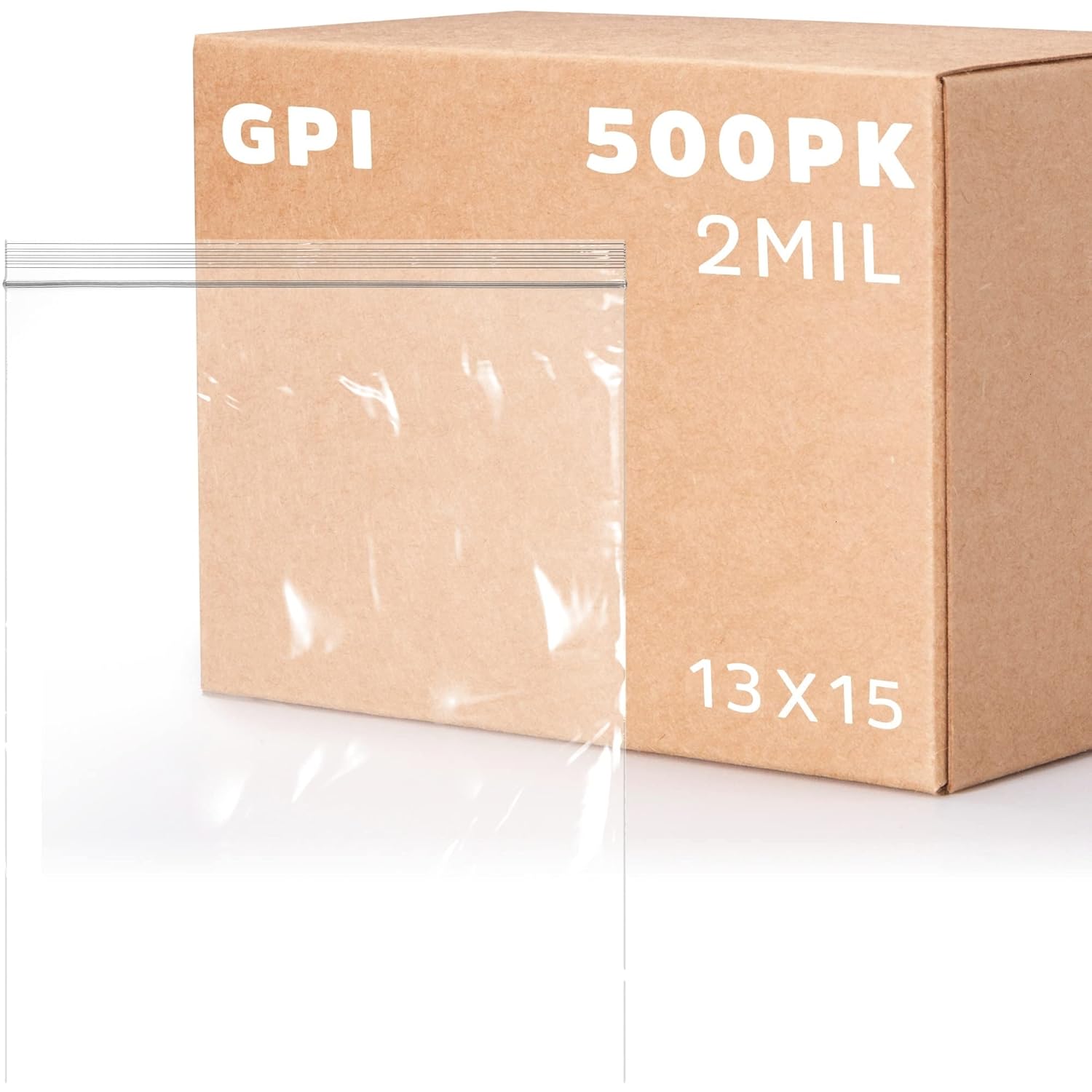 GPI PACK of 500, 2 Gallon, 13" x 15", CLEAR PLASTIC RECLOSABLE ZIP BAGS - Bulk 2 mil, Large, Strong & Durable Poly Baggies with Resealable Zip Top Lock for Travel, Storage, Packaging & Shipping.