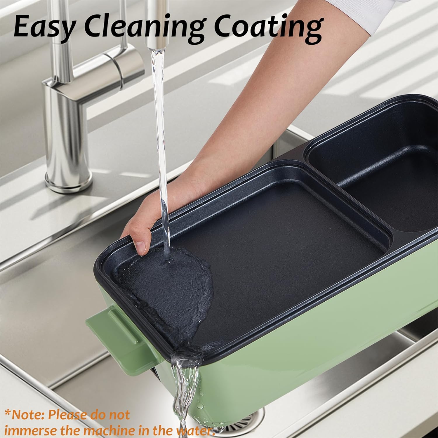 Topwit Hot Pot Electric with Grill, 2 in 1 Indoor Non-Stick Electric Pot and Griddle for Korean BBQ, Steaks, Shabu Shabu and Noodles, Independent Dual Temperature Control, Fast Heating, Green