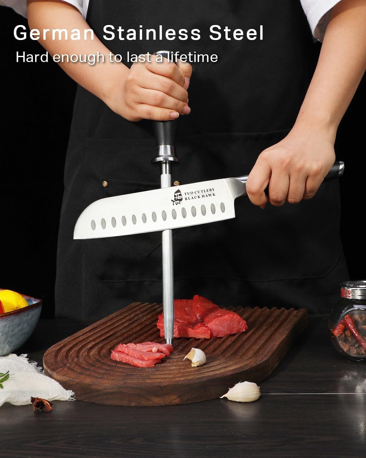 TUO Honing Rod, Knife Sharpening Rod 8 Inch, High Carbon German Steel Knife Sharpener with Ergonomic Pakkawood Handle, Premium Honing Steel for Kitchen Knives Blade Maintenance, Black Hawk Series