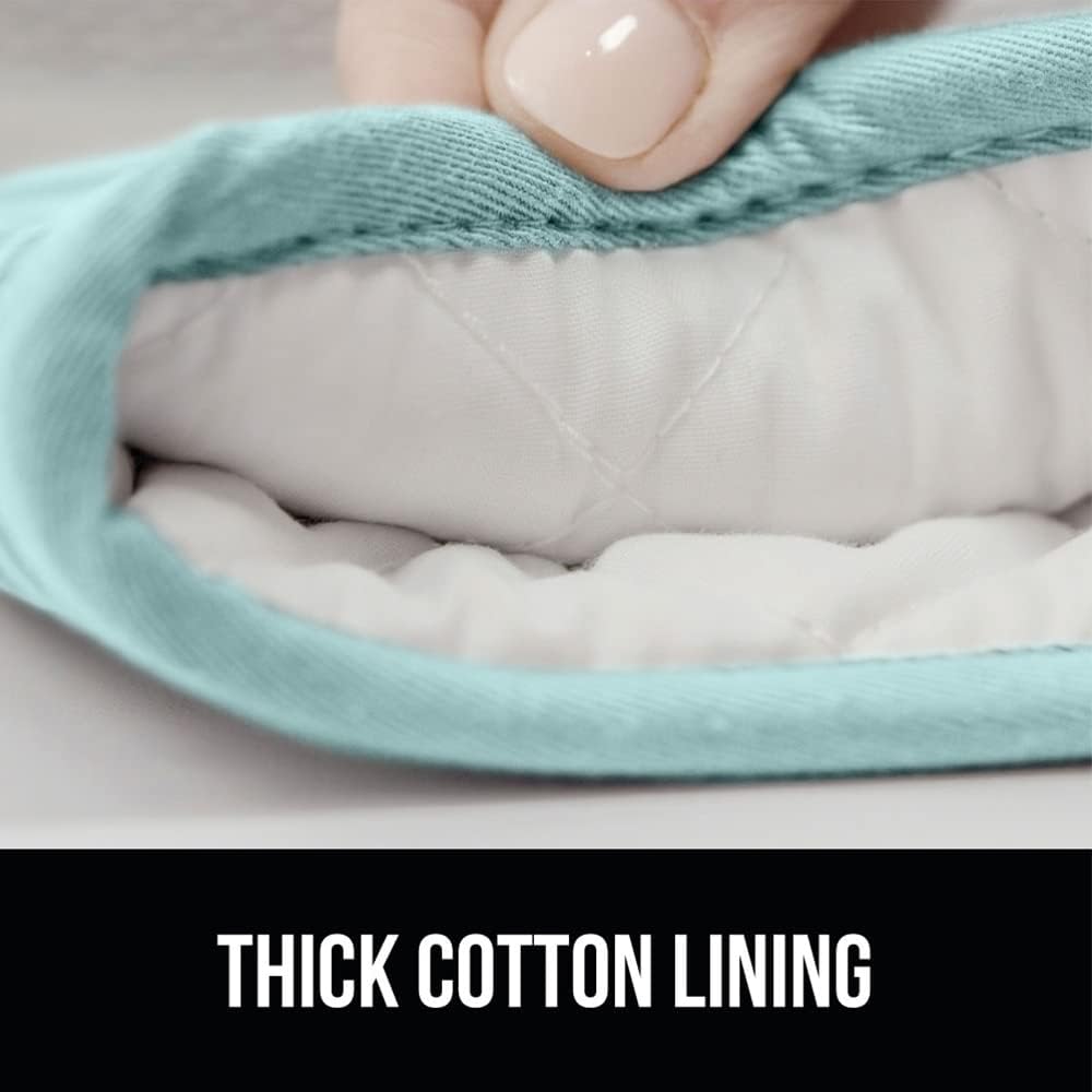 GORILLA GRIP BPA-Free Soft Silicone Oven Mitts and Pot Holders Sets of 4, Heat Resistant Waterproof Cooking Gloves, Thick Cotton Lining, Flexible Gripping for Baking Grilling, Kitchen Trivets, Mint