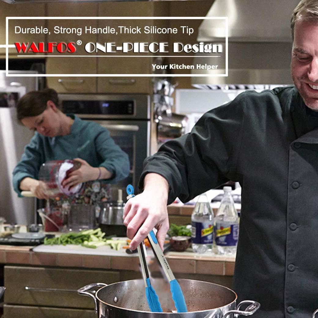 - ✓LOCKING MECHANISM & PULL-RING TECHNOLOGY -WALFOS ring-pull technology will keep your tongs from opening and closing accidentally which will allow you to facilitate better control while using them. And can be conveniently dried and stored.The set of 3 sizes - Small 7", Medium 9", Large 12" is perfect for all your needs.