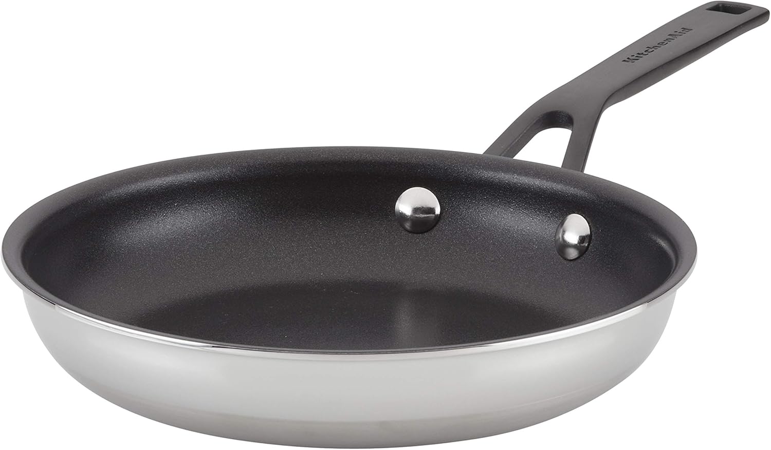 KitchenAid 5-Ply Clad Polished Stainless Steel Nonstick Fry Pan/Skillet, 8.25 Inch