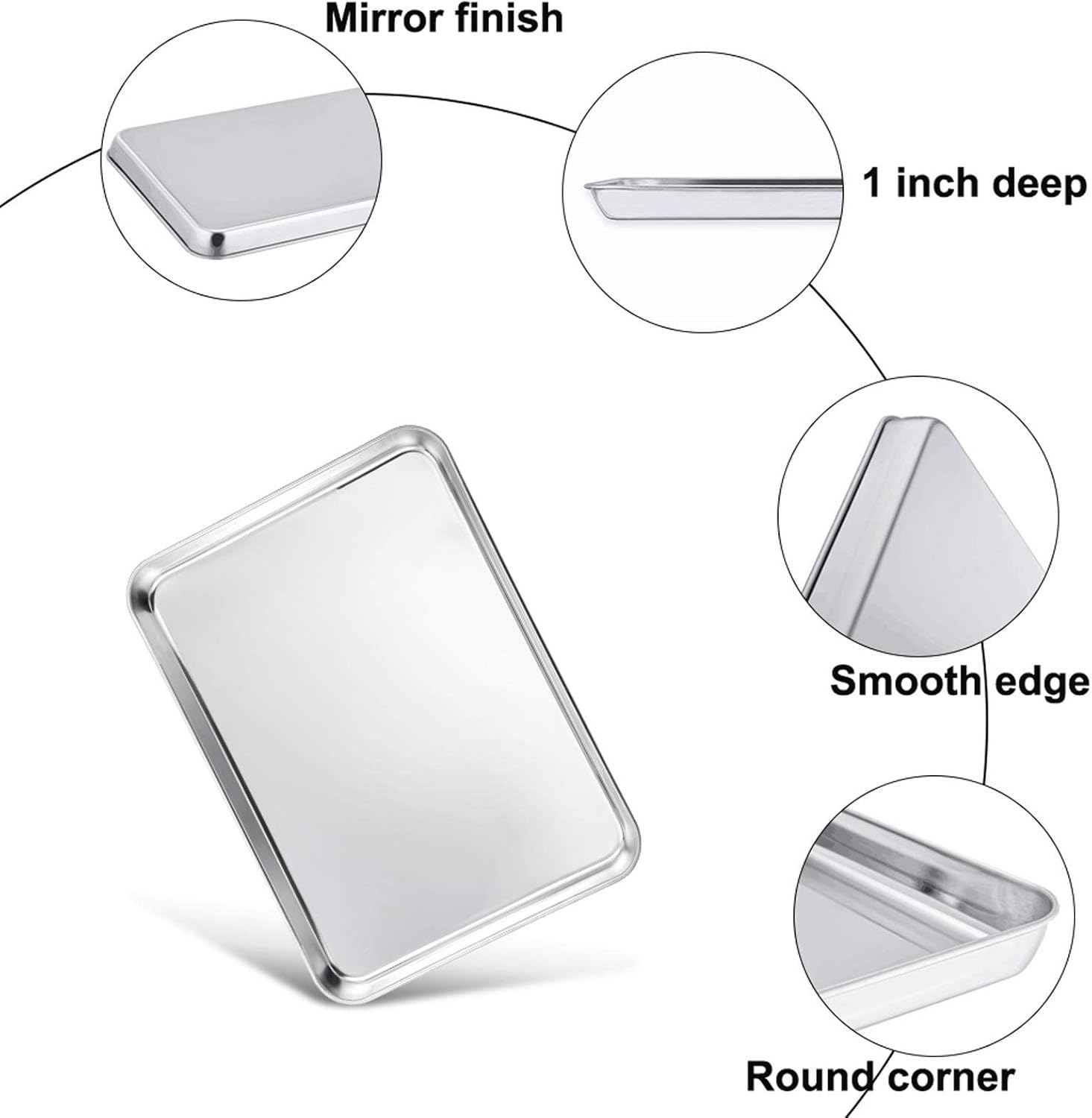 TeamFar 10.5’’ x 8’’ x 1’’ Toaster Oven Pan with Rack Set, Small Baking Pans Tray Stainless Steel with Cooling Rack Set of 4, Non-Toxic & Heavy Duty, Mirror Finish & Dishwasher Safe