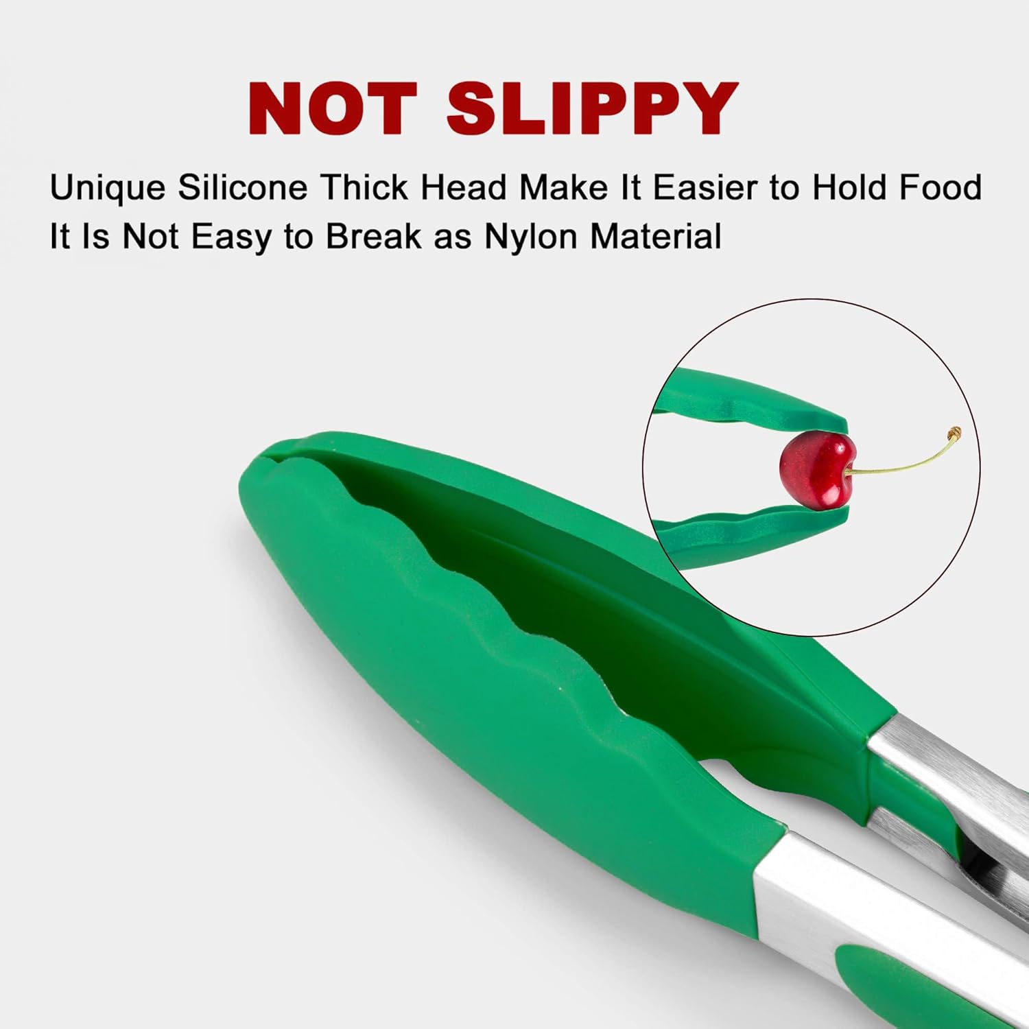 9-Inch & 12-Inch Premium Stainless Steel Food Tongs, Turquoise Silicone BPA Free Non-Stick BBQ Cooking Grilling Locking Kitchen Tong