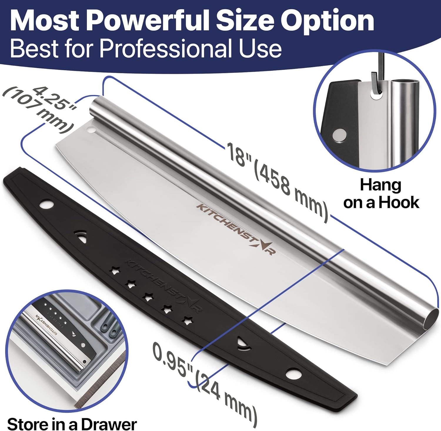 KitchenStar 18-Inch Pizza Cutter Rocker Blade - Sharp Stainless Steel Slicer Knife, Protective Cover, Dishwasher Safe, Extra Large - Commercial Pizza Oven Accessories