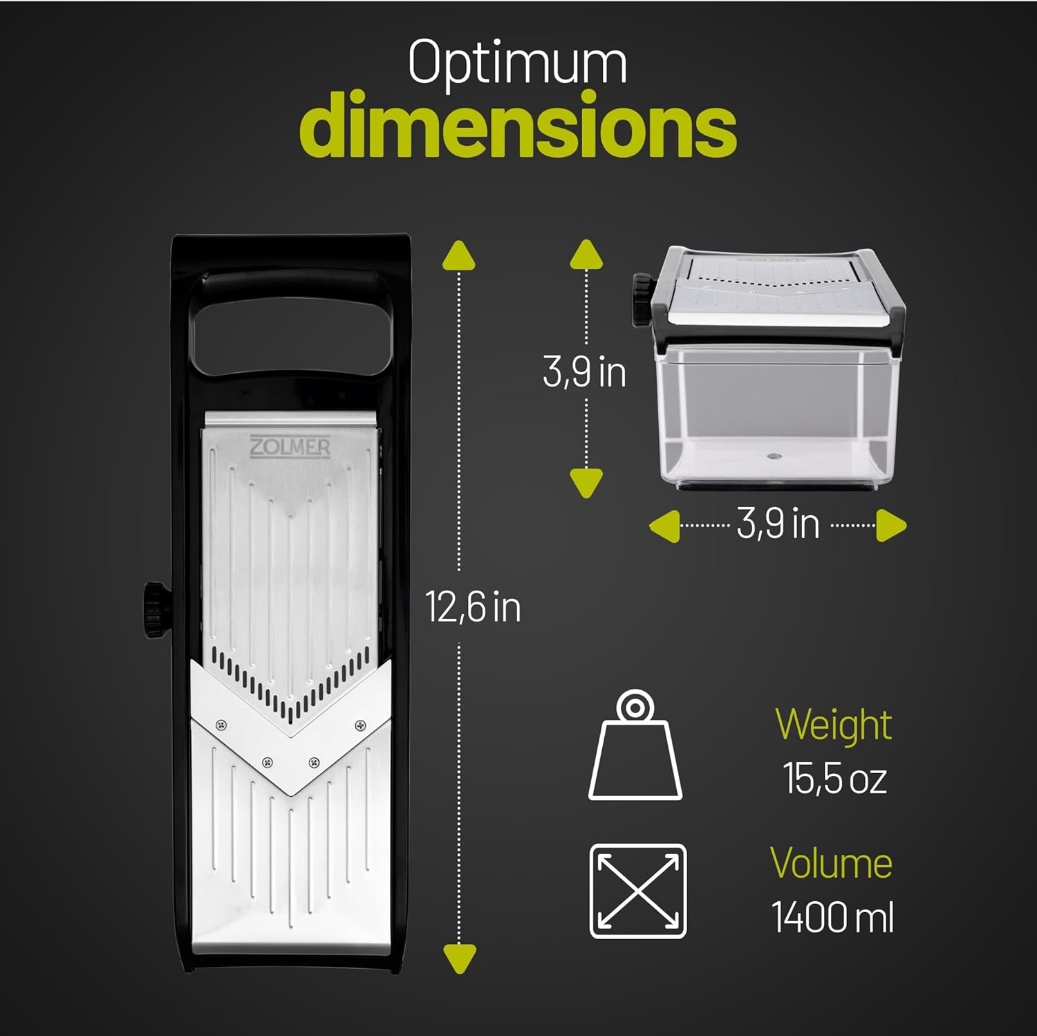 - ✅ WITH TWO EXTRA-SHARP BLADES - Two Julienne inserts with 3 mm and 6 mm widths – With ZOLMER’s premium kitchen slicer vegetable cutter, slicing vegetables and fruit into even strips becomes incredibly easy!