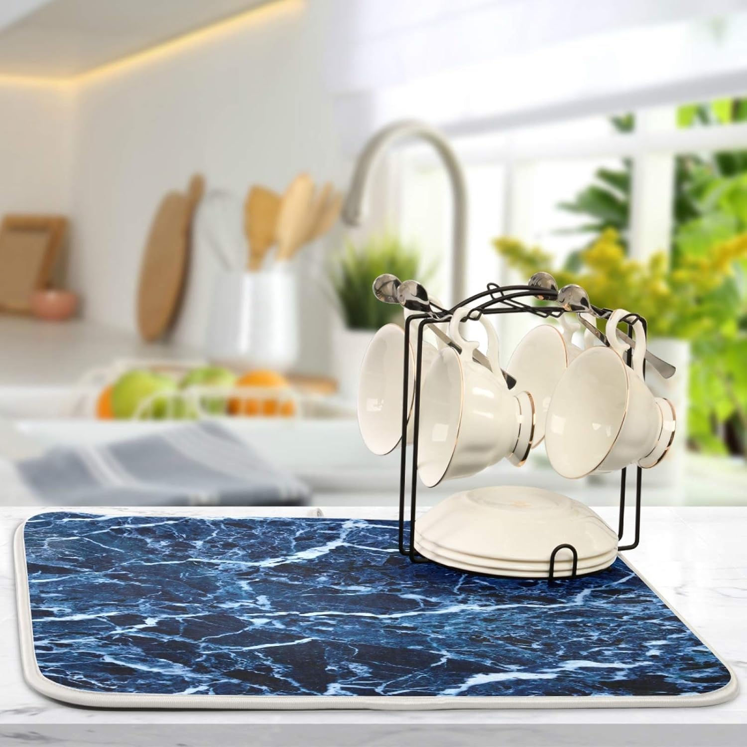 Super Absorbent Dish Drying Mat, Microfiber Fast-Drying Dish Mat, 24" x 18, Kitchen Dish Drying Pad, Navy Blue Marble…