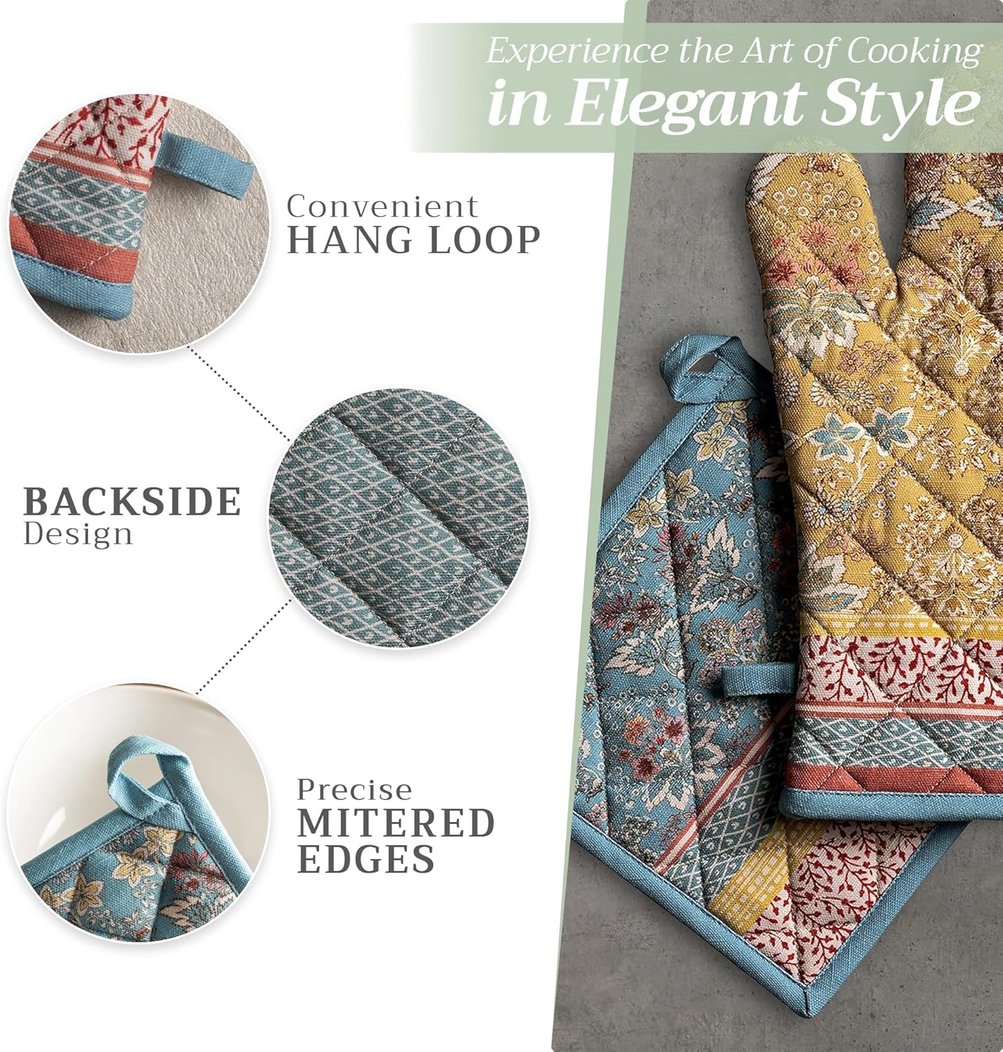 - Premium Quality: Crafted from quilted 100% cotton, this heat resistant oven mitt and pot holder set offers comfort, flexibility, and protection from hot cookware. Ideal cotton oven mitts for daily kitchen use and cooking safety