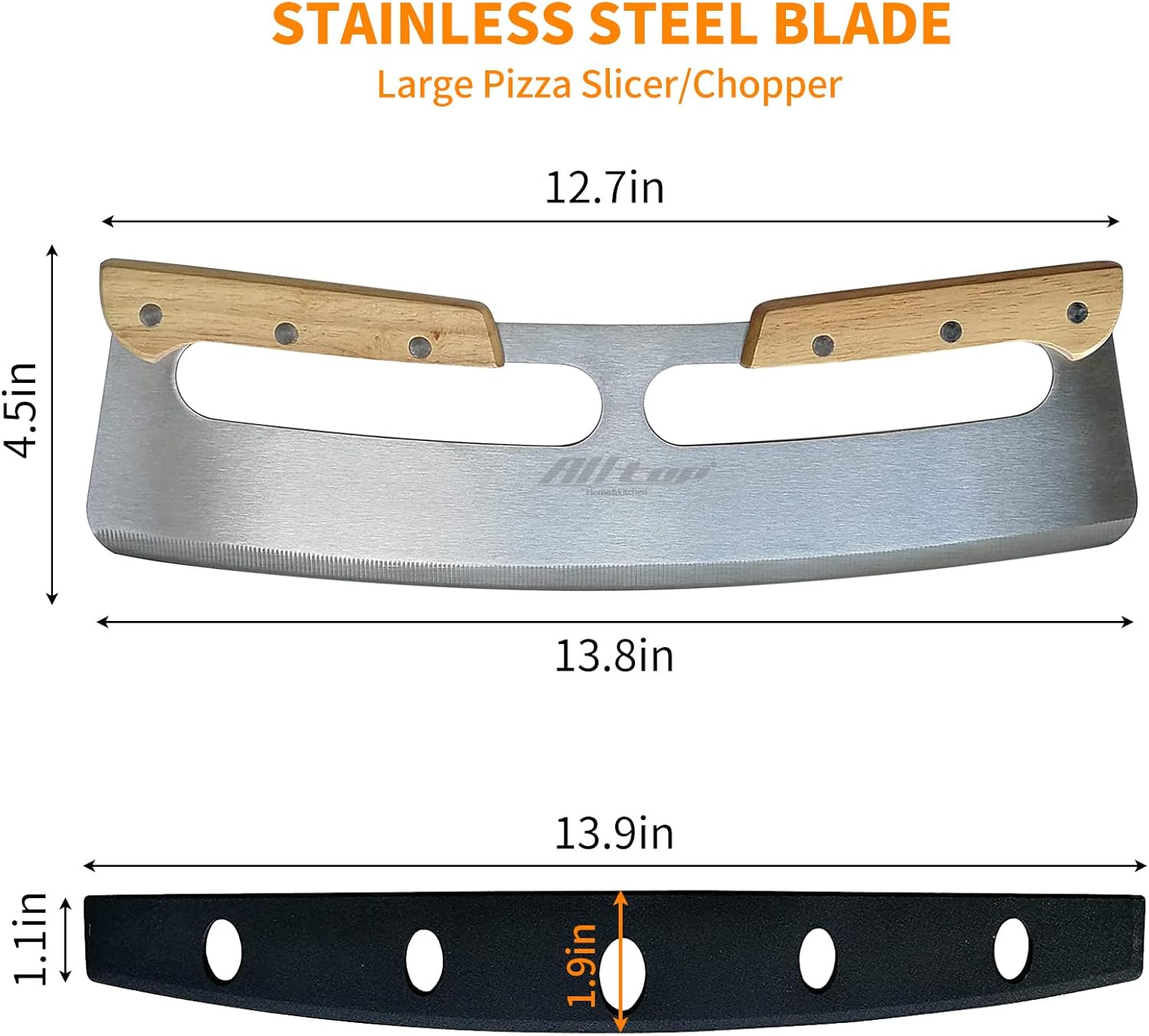 ALLTOP Pizza Cutter Rocker,Stainless Steel Blade Knife With Double Wooden Handle & Plastic Cover, Large Pizza Slicer/Chopper, Essential Kitchen Tool -14 In
