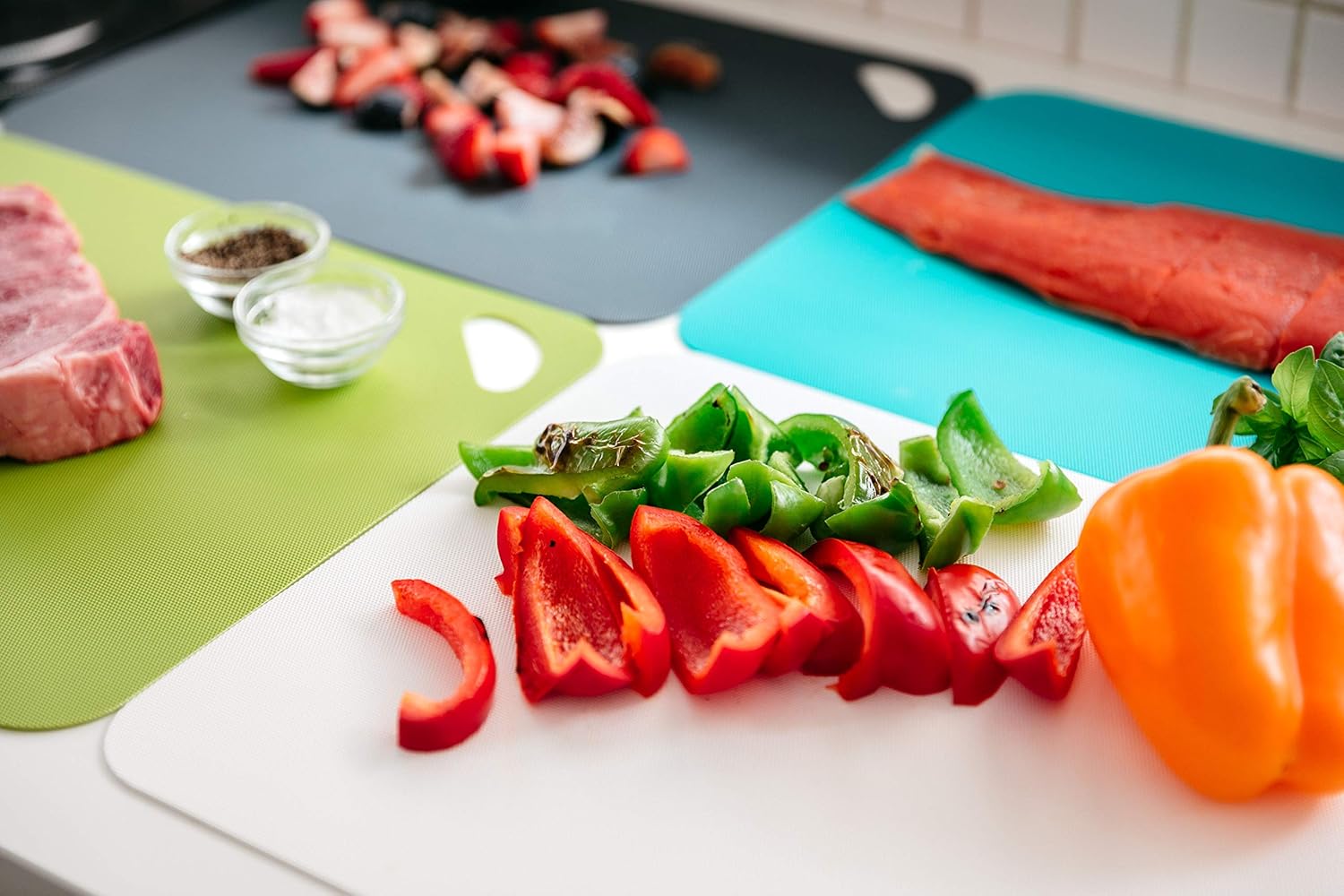 - INNOVATIVE CUTTING MATS: These cutting boards feature an innovative, lightweight, and flexible design. They are plastic boards, non-porous and non-absorbent, ensuring easy cleanup and hygiene.