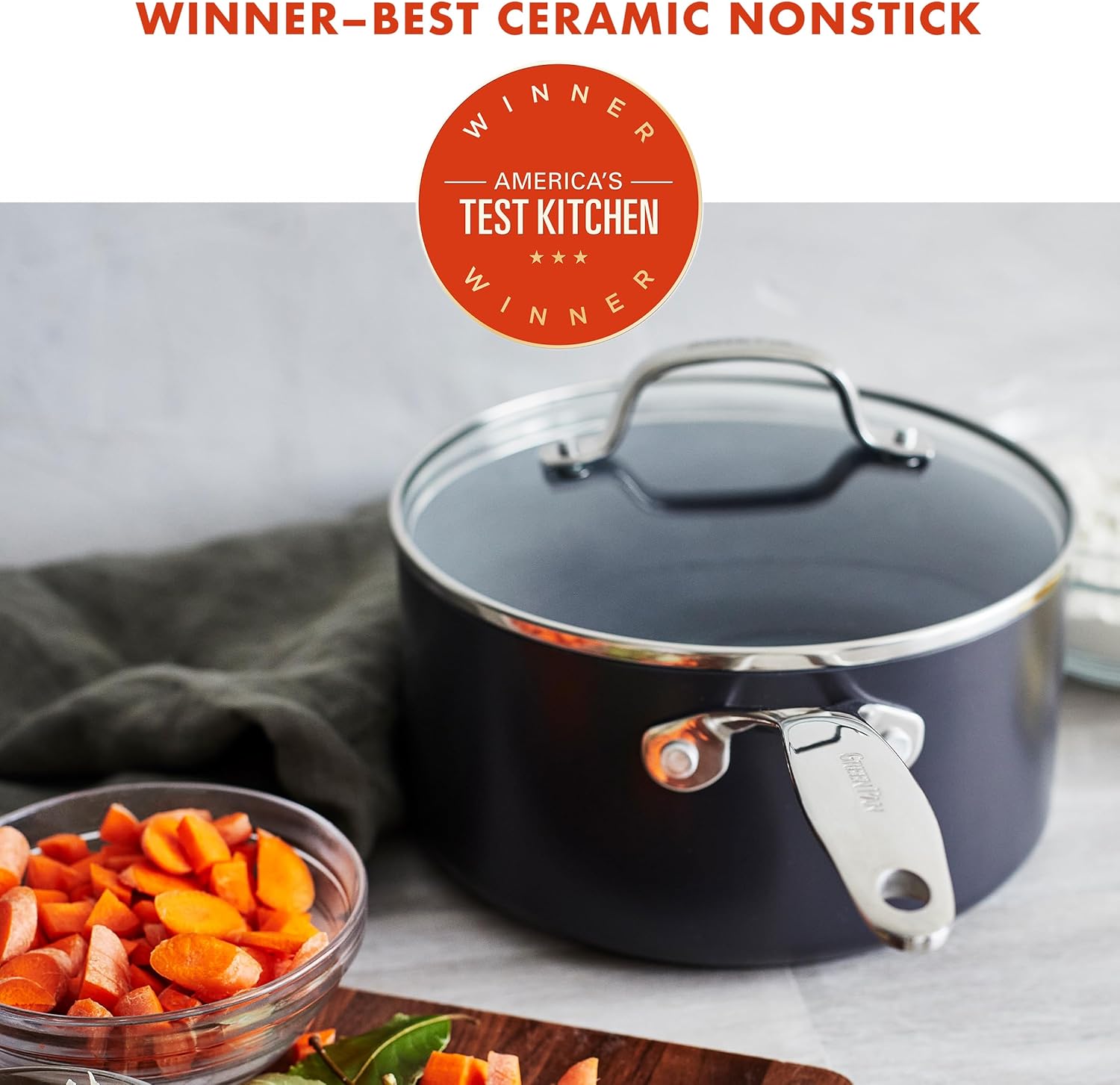 - CUTTING-EDGE CERAMIC NONSTICK: Infused with diamonds, GreenPan's metal utensil safe ceramic nonstick offers remarkable durability, balanced heating, and effortless cleanup.
