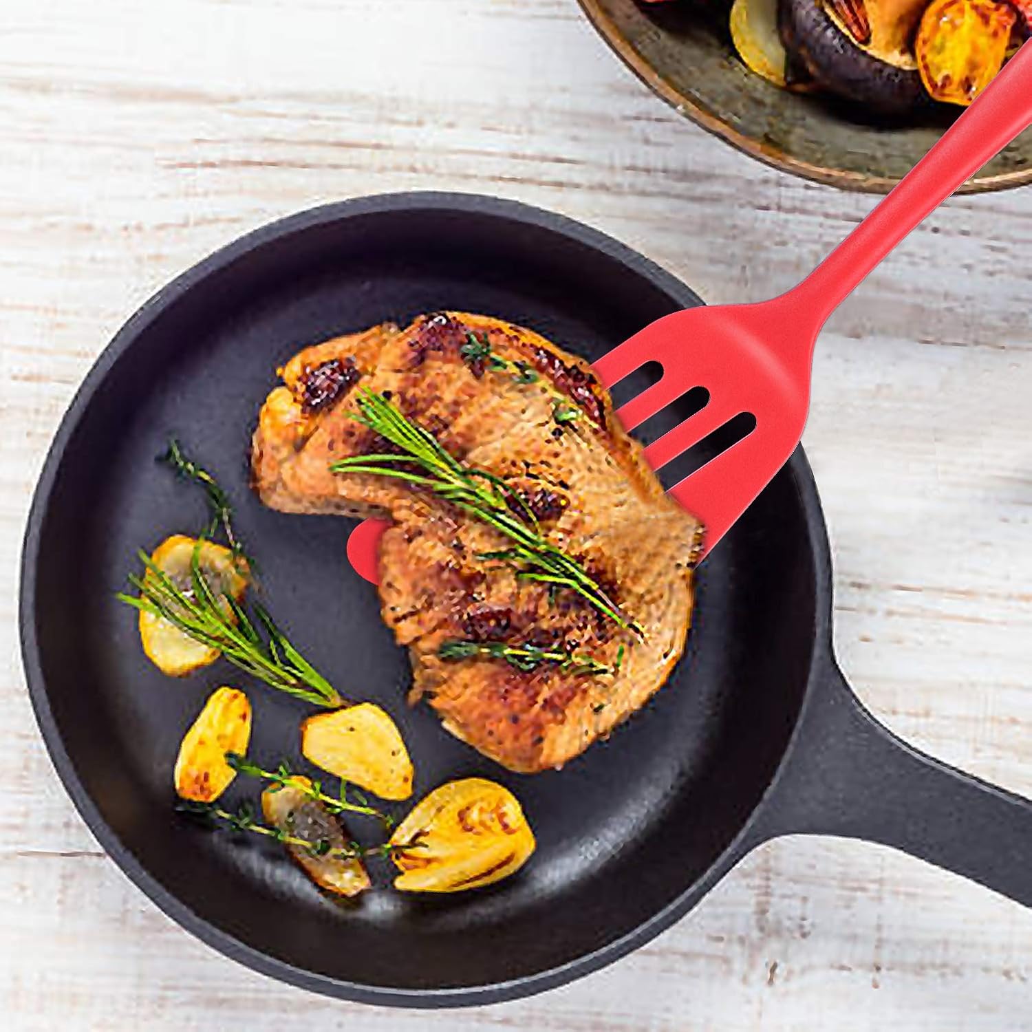 Pack of 2 Silicone Fish Spatula, Non-stick Large Slotted Flipper Turner, High Heat Resistant Kitchen Cookwares for Frying, Cooking Seafood, Meat, Eggs, Omelets, Pancakes, Burgers
