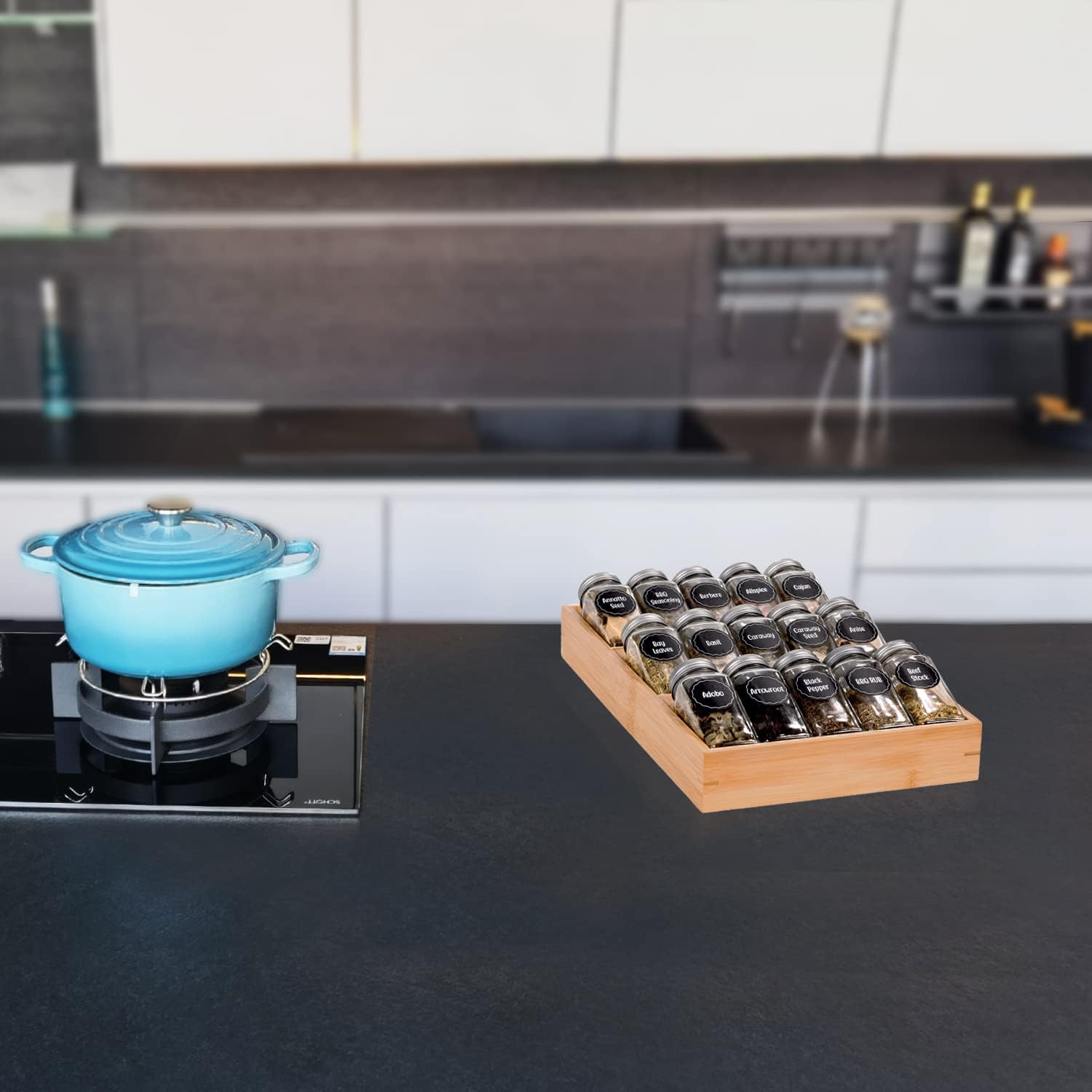 Bamboo Spice Rack Organizer for Drawer 3 Tier Bamboo Spice Tray Cabinet for Kitchen Storage and Organizer (Pre-Measure Your Drawer)(1 Pack, Drawer)