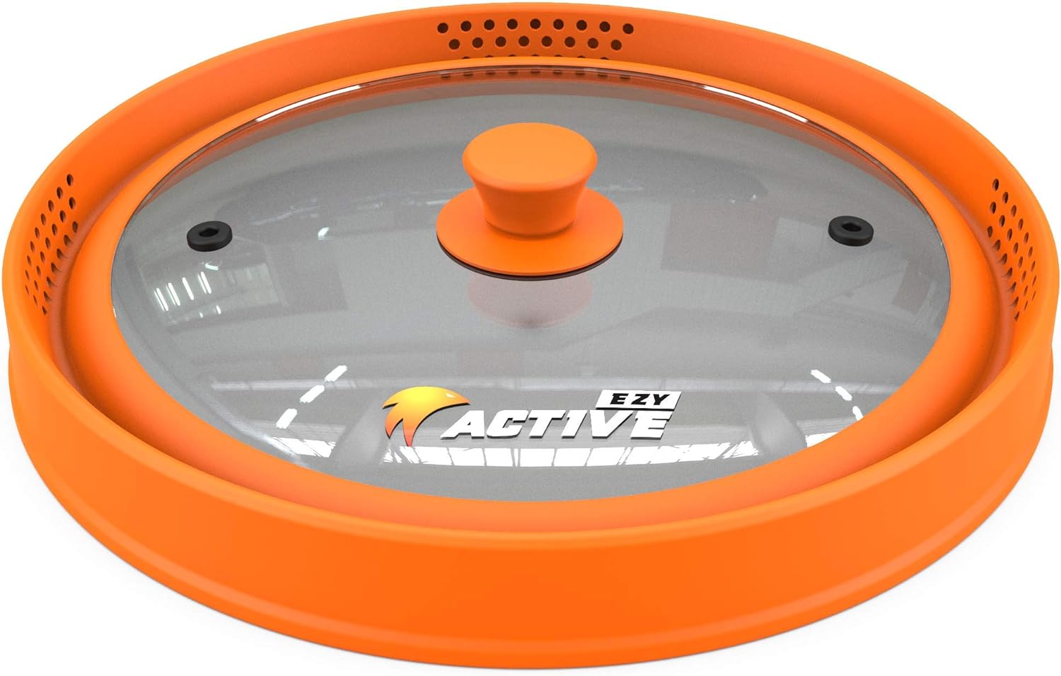 Collapsible Microwave Cover for Food - Silicone and Glass Splatter Guard Lid for 6-12 inch Plates & Bowls, Dishwasher Safe, Heat Resistant, BPA-Free, Orange