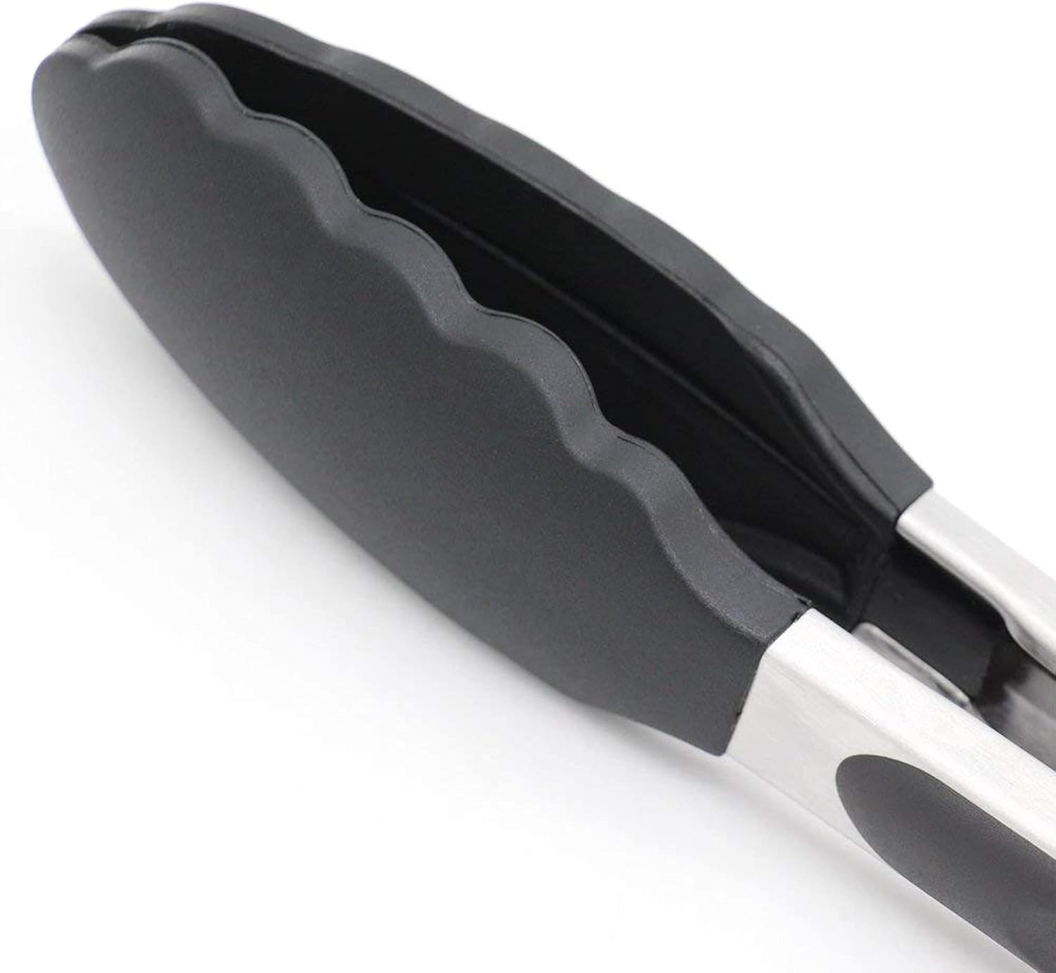 4 Pack Black Kitchen Tongs, Premium Silicone BPA Free Non-Stick Stainless Steel BBQ Cooking Grilling Locking Food Tongs, 9-Inch & 12-Inch