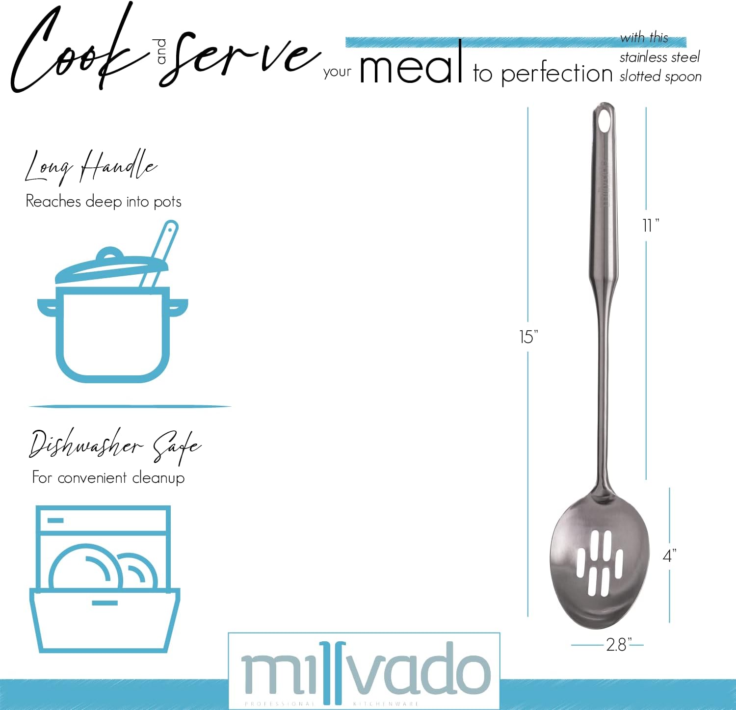 Stainless Steel Slotted Cooking Spoon, Large Metal Chef Strainer Utensil For Cooking, Serving, And Mixing, The #1 Dishwasher Safe Kitchen Tool, 15" Long Spoon With Holes