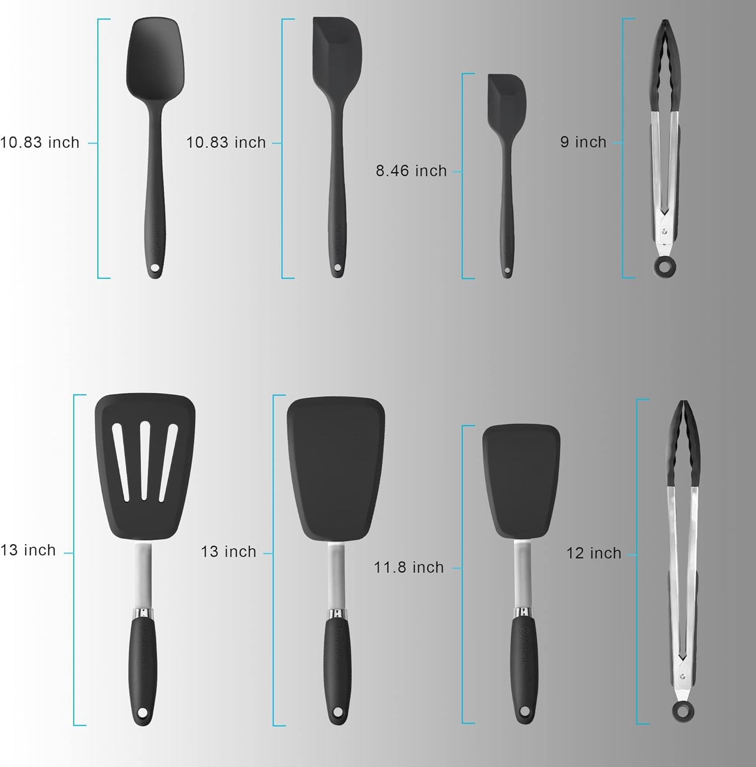 Silicone Spatulas Set Turners Tongs Cooking Utensils Set High Heat Resistant Kitchen Scraper Spatulas for Cooking Mixing Baking BPA Free Dishwasher Safe, Black