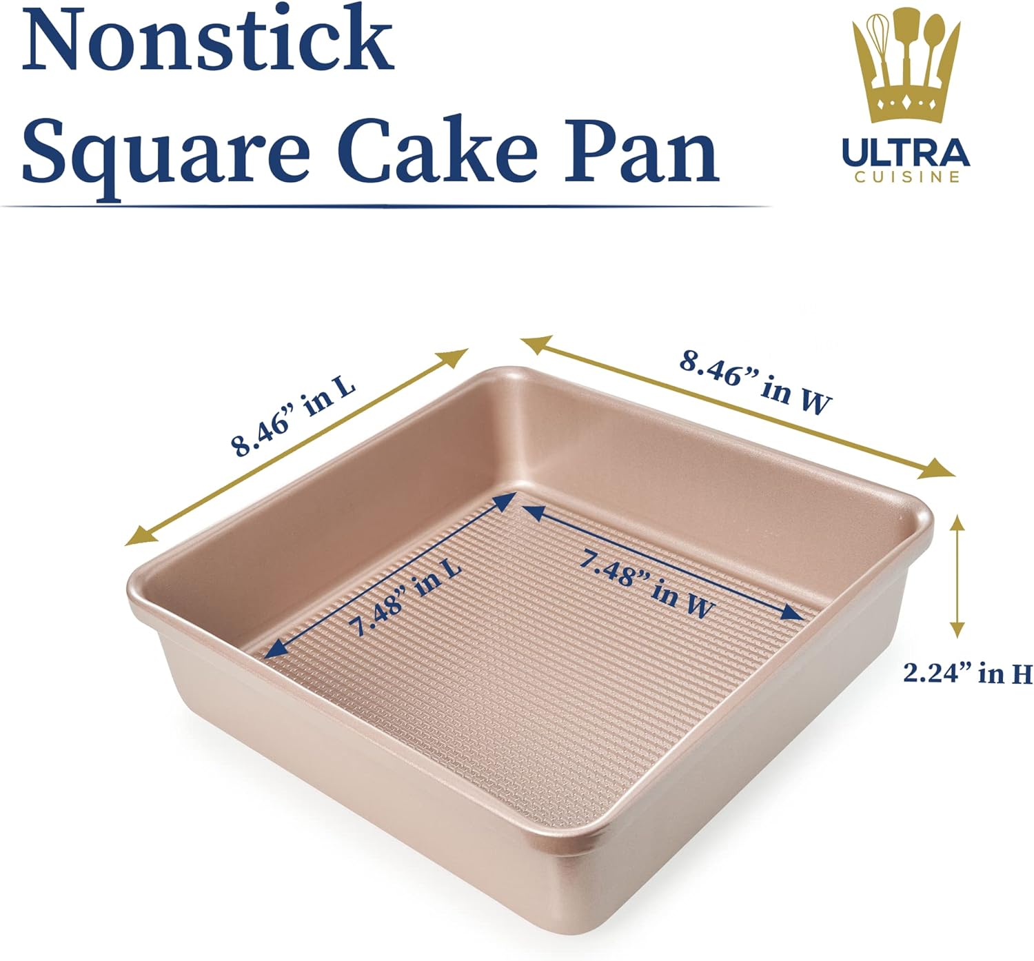 - DESIGNED IN COLORADO, USA: Ultra Cuisine is a Colorado-based small business making simple, elegant, and professional quality bakeware for families everywhere. Our nonstick 8x8 square cake pan is a baker’s essential for baking sweet and savory treats for your family and friends! Bake cakes, brownies, and much more with our square cake baking pan.