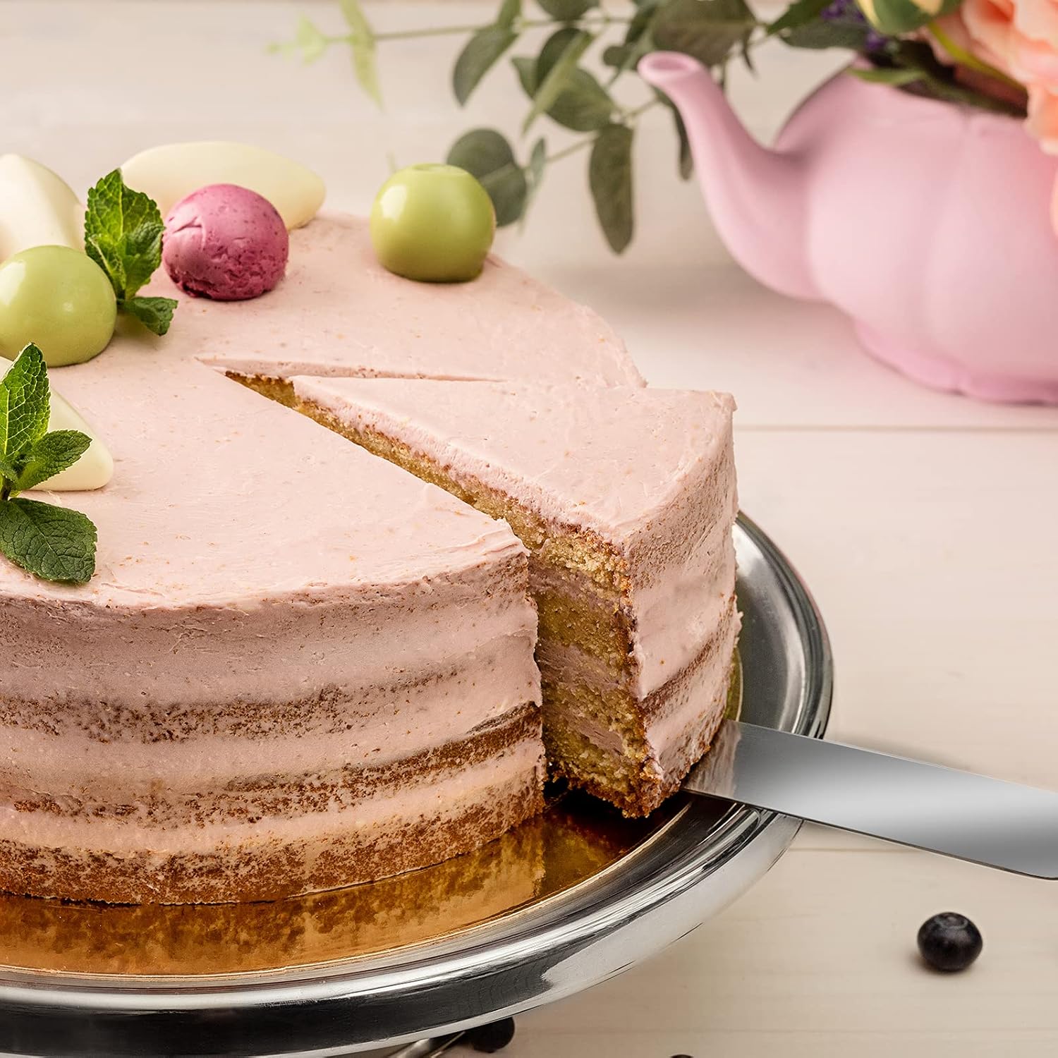- Angled Feature: Angled blade frosting spatula helps keep fingers out of icing when decorating cakes or treats. The cake decorating spatulas are great for smoothing frosting on cakes, cupcakes and cookies. The stainless steel cake spatula is essential for any cake decorator.