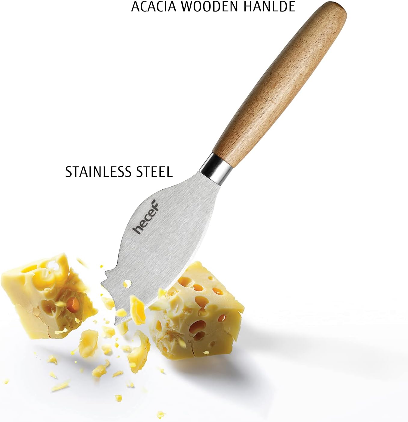- Functional & Practical: Hecef Acacia wood cheese board set is designed to serve hot and cold foods, gourmet cheeses, meats, olives, crackers, tapas, mini bites, appetizers, dips, etc. You can simply relax to enjoy your cheese time at home or in restaurants and cafes. You can also take it out and have a happy picnic in a natural and beautiful place.