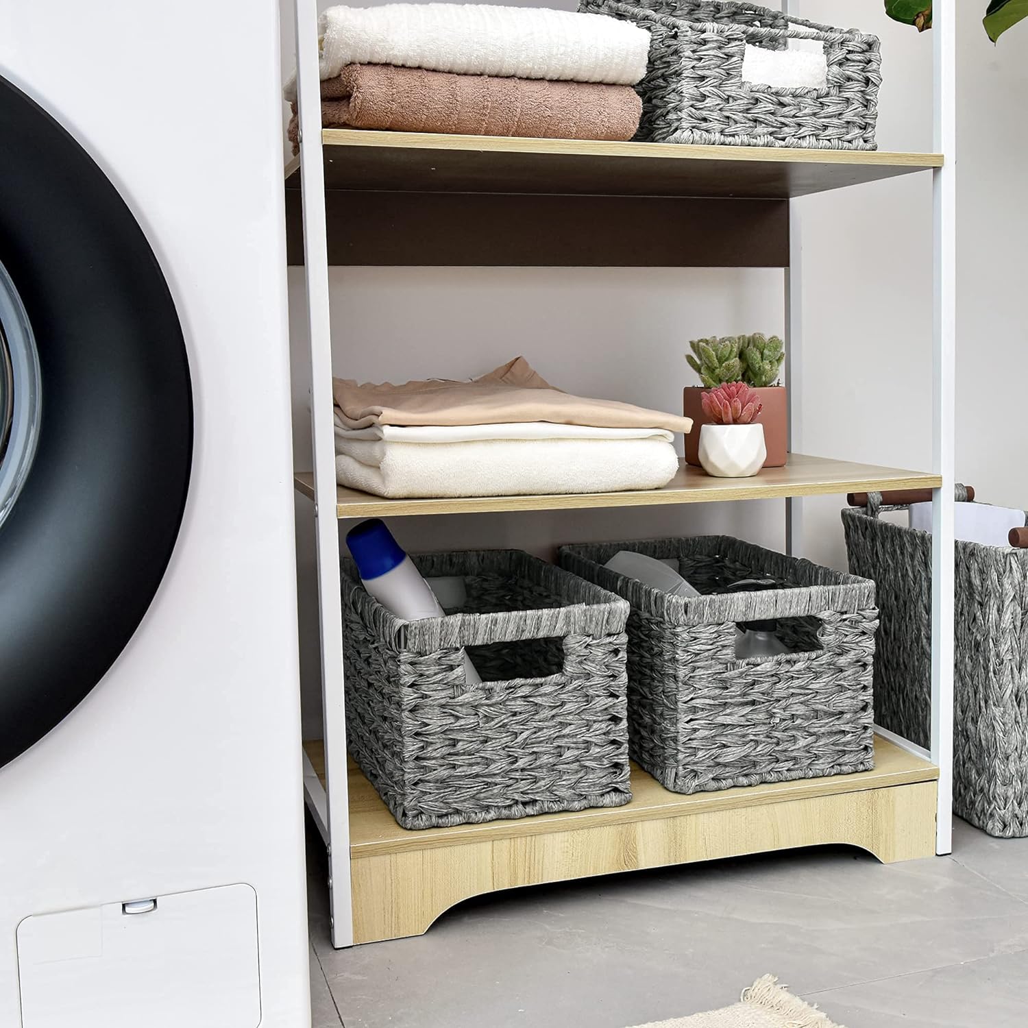 - Multiple Function - Moisture-proof material makes the wicker bins easy to keep clean, perfect for storage use in kitchen, bathroom, and entryway to store foods, personal care products, crafts, keys, etc.