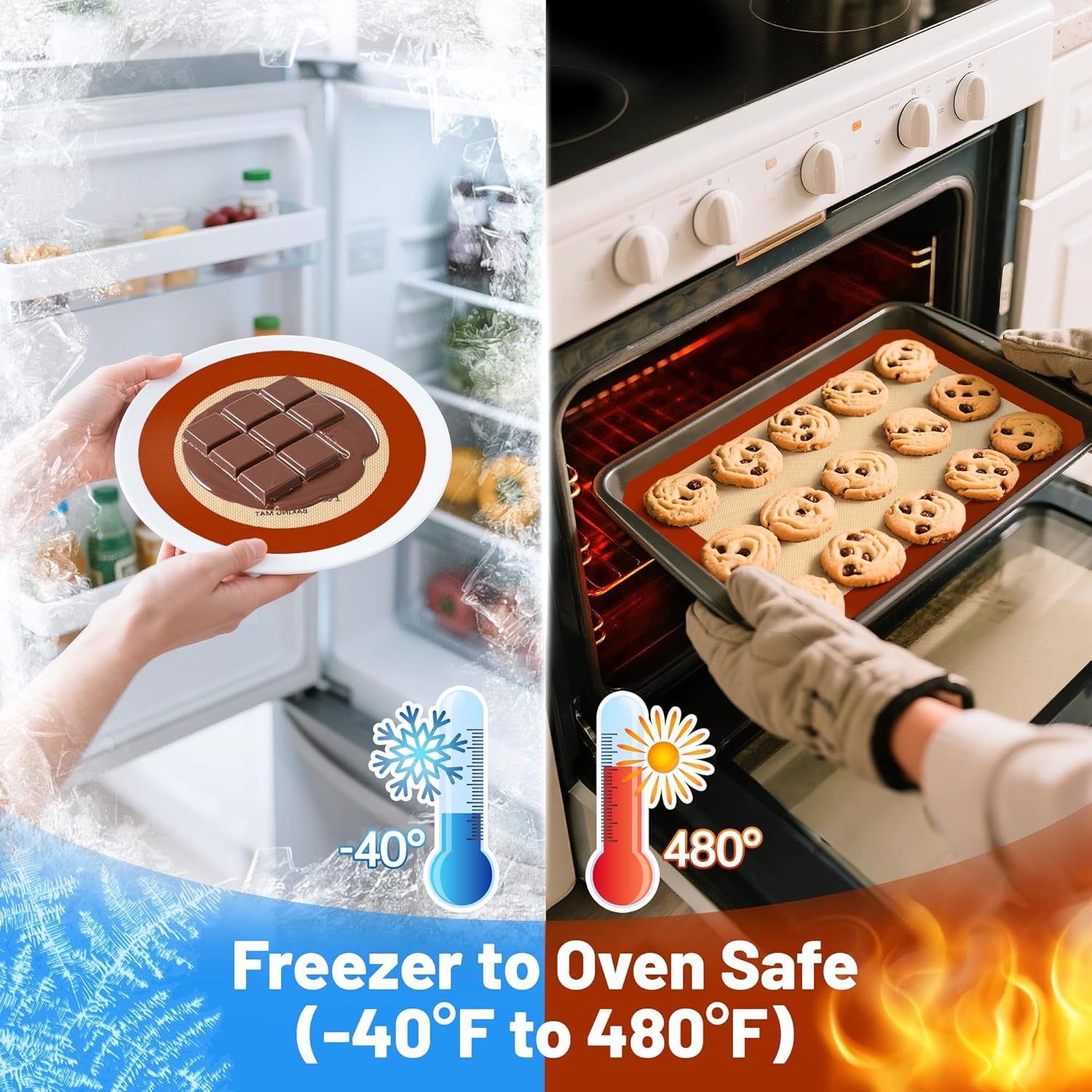 - 【100% Food Grade Silicone Mat】Crafted with ultra-durable safe, food-grade material, BPA-free, and odorless, 0.7MM thickness withstands years of baking sessions. Our silicone baking liner sheet is also safe in -40℉ to 480℉ and is perfect for dishwashers ovens microwaves freezers
