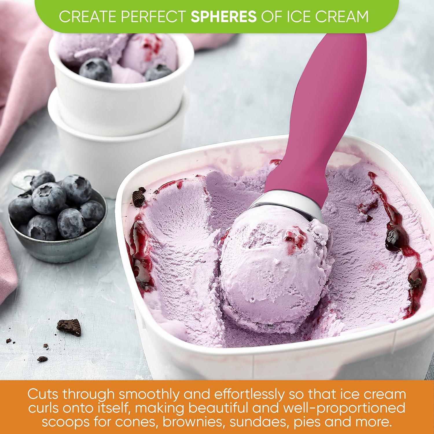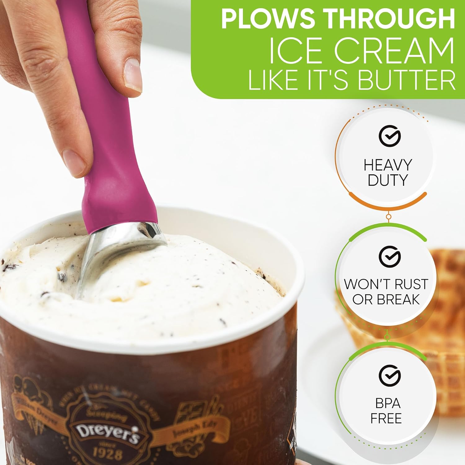 Spring Chef Heavy Duty Metal Ice Cream Scoop with Non-Slip Handle, Premium Ice Cream Spade for Frozen Yogurt, Gelato, Sorbet, Sundae, Melon, Cookie Dough - Dishwasher Safe Kitchen Tool - Magenta