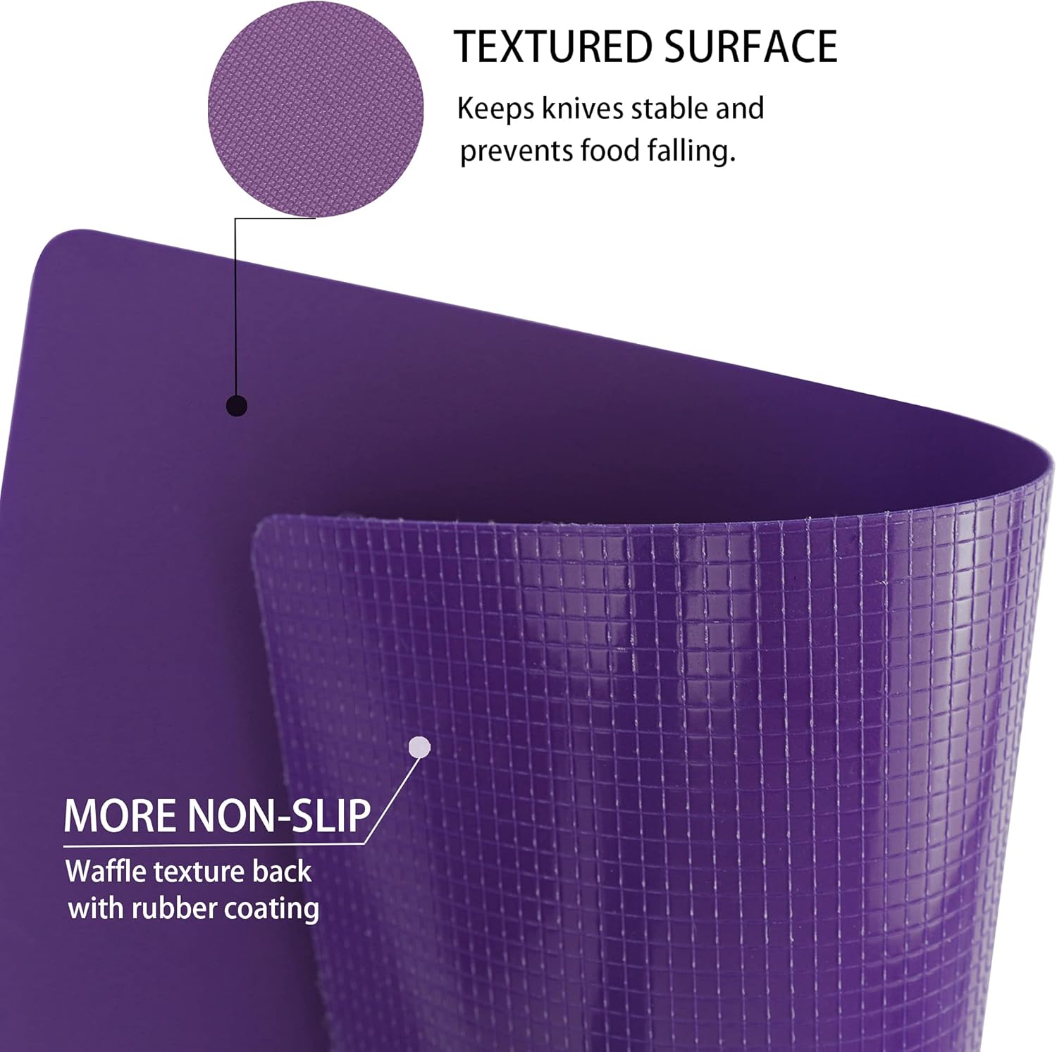 - Non-slip on Both Sides -The waffle texture with rubber coating on the bottom grips the countertops better and won’t slide around. For a slippery surface, just put a wet paper towel underneath to get amazing stability. For your safety, the textured surface holds the food on the board while chopping, preventing the food from moving.