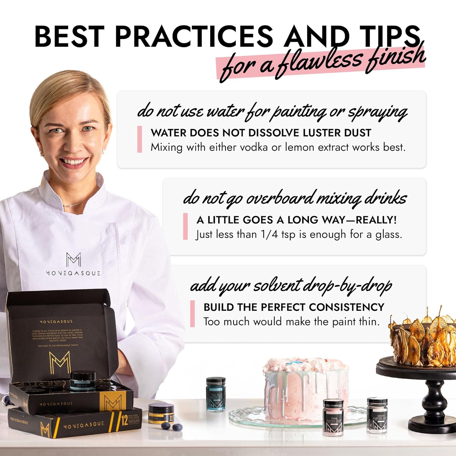 - HIGH-QUALITY INGREDIENTS: Crafted with 100% food-grade ingredients, our luster dust is tasteless, vegan, and allergen-free. Perfect for those with dietary restrictions, it's safe for children and ensures a guilt-free, delightful decoration for all your culinary creations.