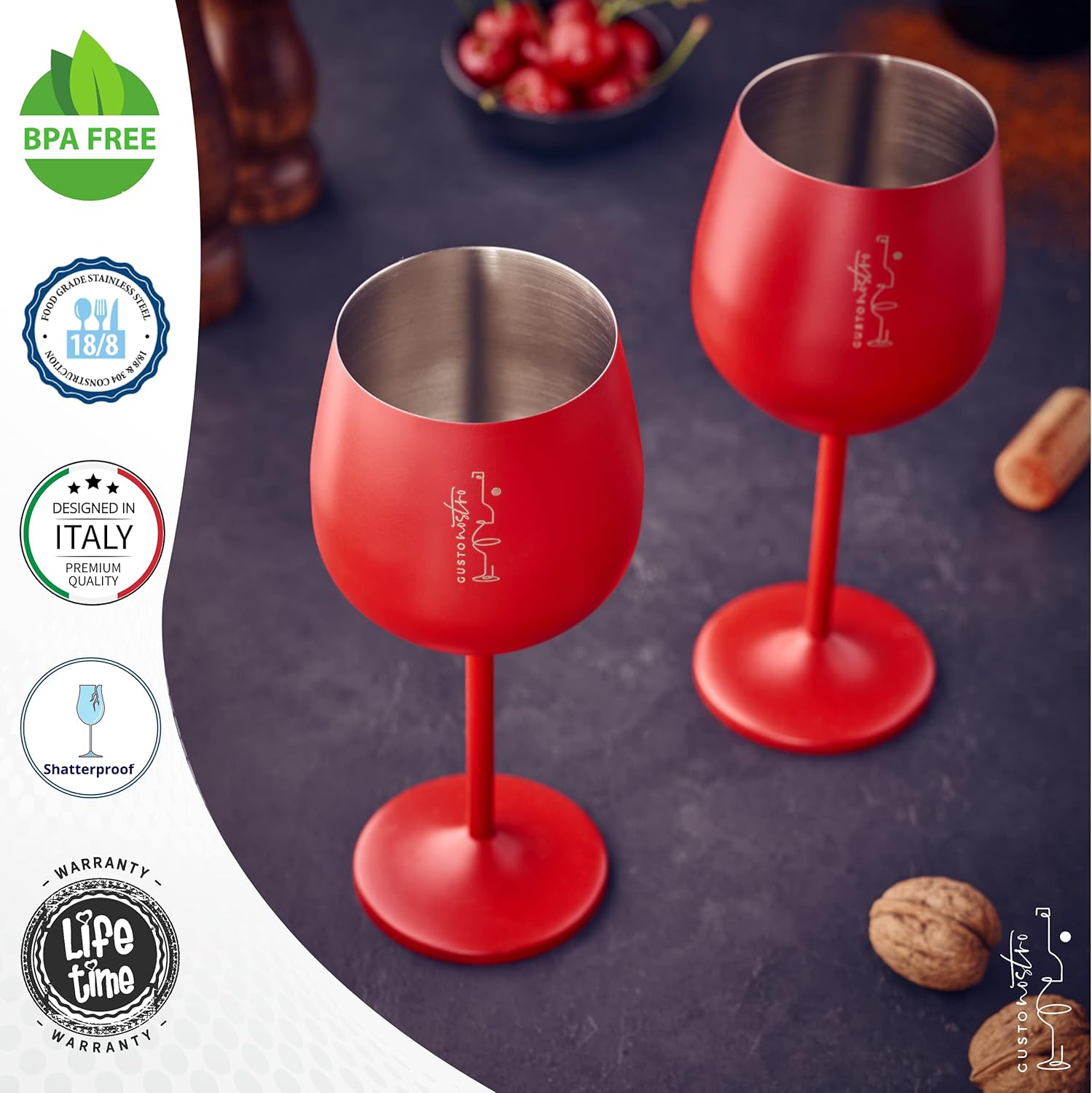 Gusto Nostro Stainless Steel Wine Glass - 18 oz - Unbreakable Colorful Wine Glasses for Travel, Camping and Pool - Fancy, Unique and Cool Portable Metal Wine Glass for Outdoor, Picnics (Set of 2)
