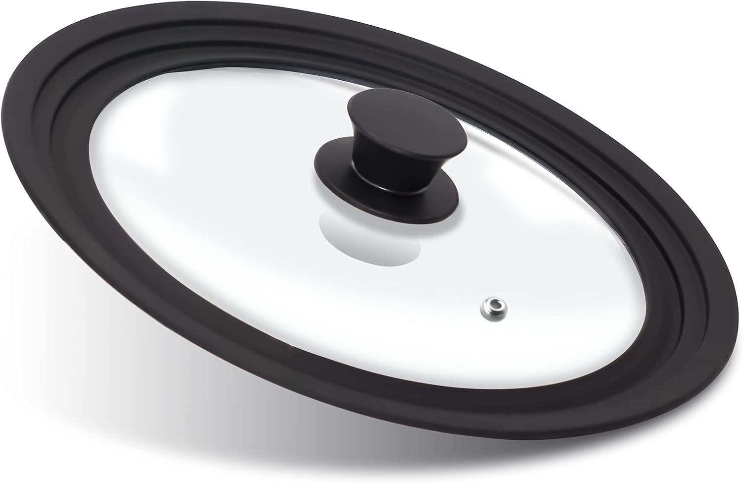 Anaeat Silicone Universal Lid for Pots, Pans and Skillets - Tempered Glass Covered with Heat Resistant Silicone Rim Fits 8", 8.5" and 9.5" Diameter Cookware -Easy to Use Replacement Frying Pan Cover