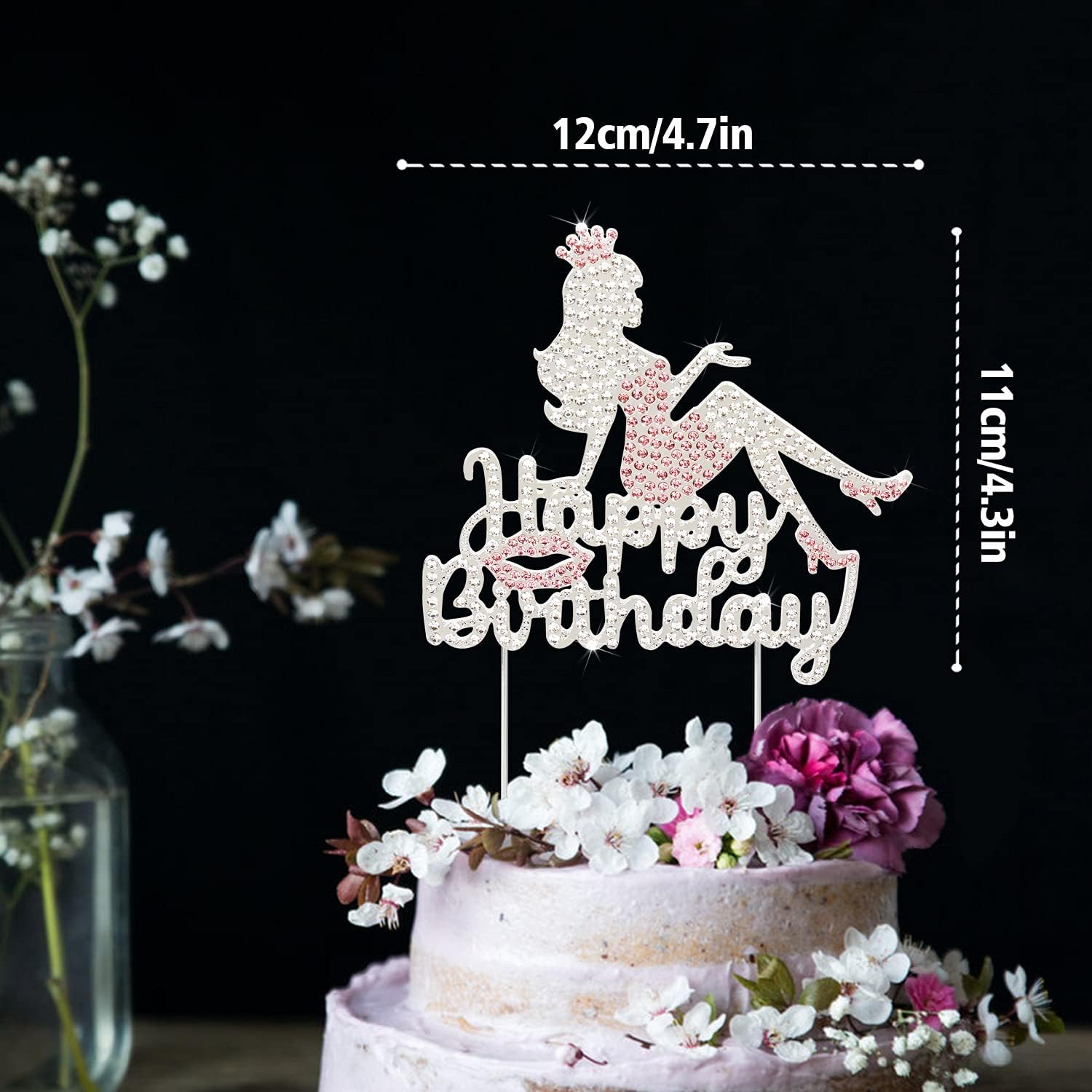 LINGTEER Happy Birthday Crown Queen Lady Rhinestone Cake Topper - Cheers to Makeup Spa Birthday Party Cake Centerpieces Decorations Gift Sign - Pink.