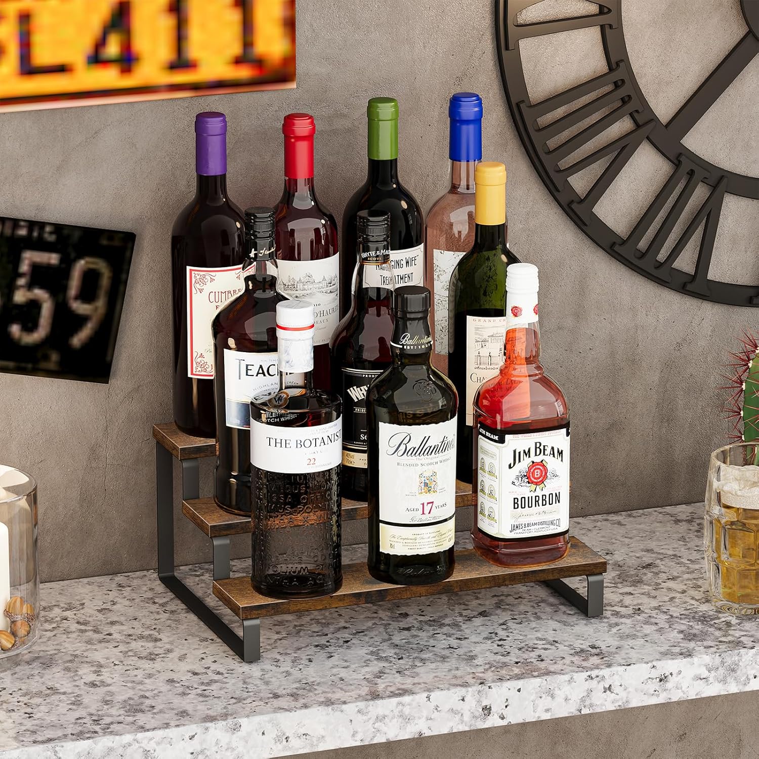 - Vintage Appearance: Spice rack organizer for cabinet have rustic and aesthetic wood grain that fits perfectly with the black matt paint. Simple and elegant dark brown, adding a vintage rustic feel to your home. This rack is suitable for many places in your home.