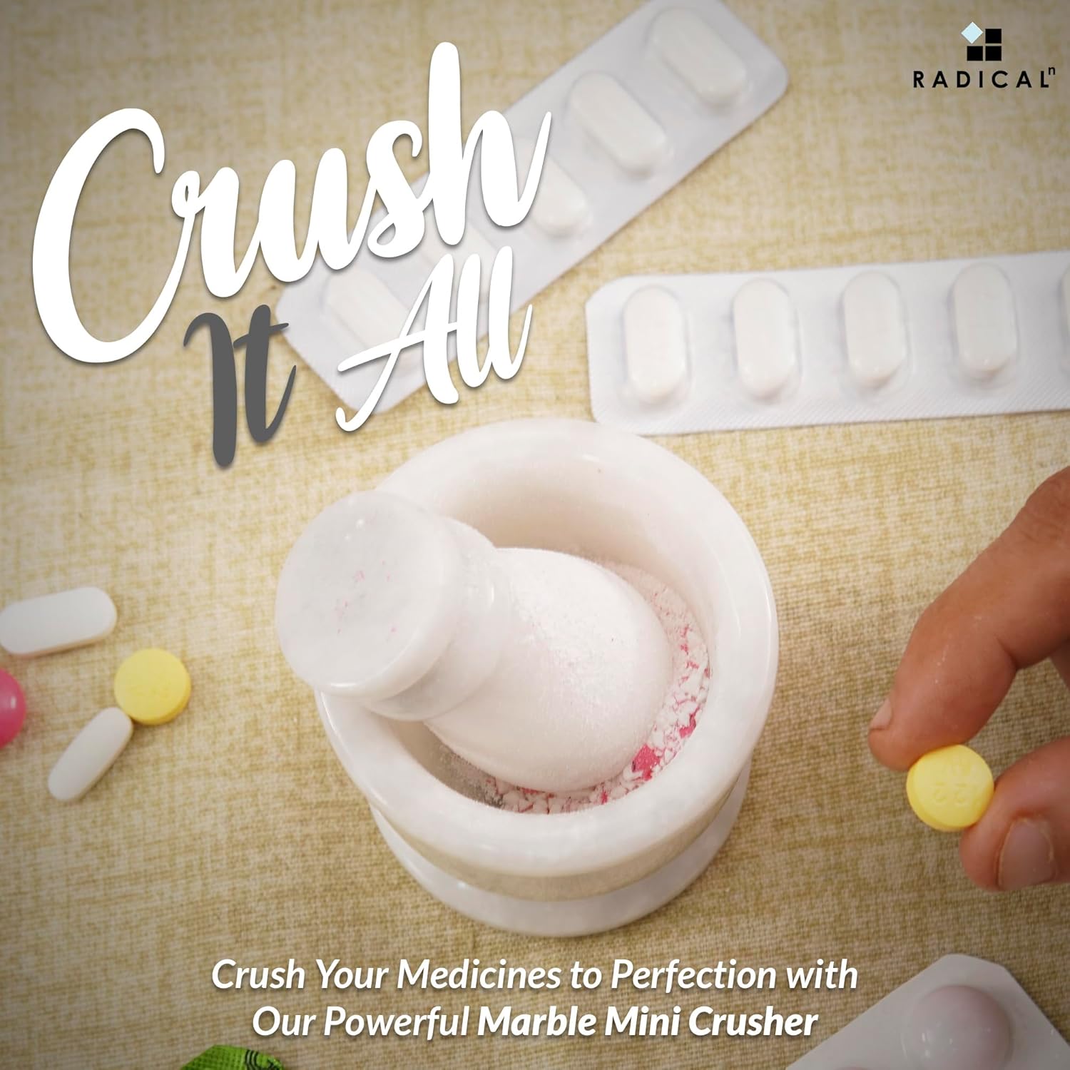 - WHAT IS INCLUDED - 1x Mortar and Pestle Set. Comes along with the RADICALn secure and fragile packaging