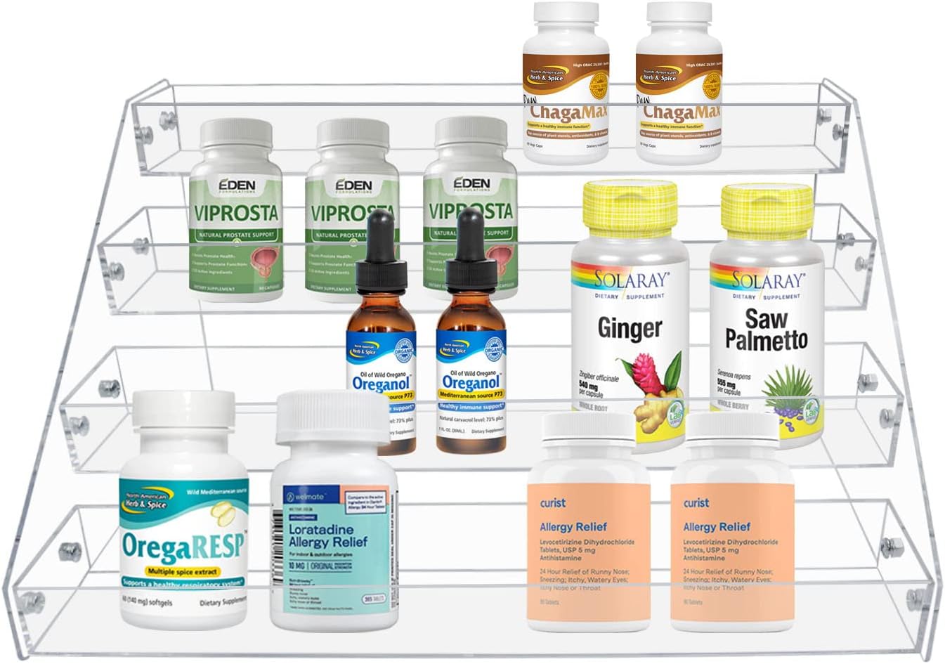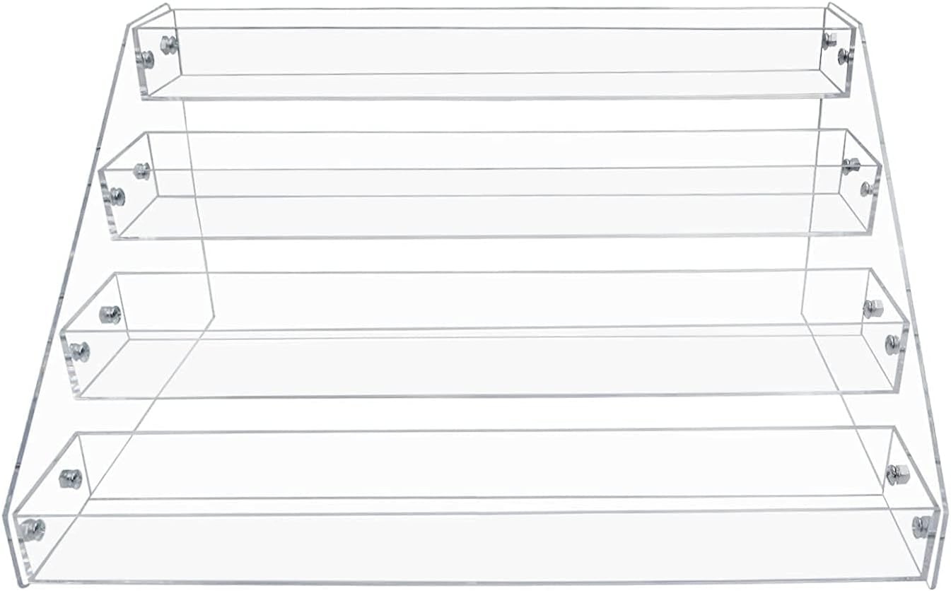 PMMASTO Tiered Spice Rack, Seasoning Organizer, Clear Acrylic Vertical Shelves Can Organizer for Countertop, Cabinet, Pantry, Kitchen Organization and Storage - 4 Tier