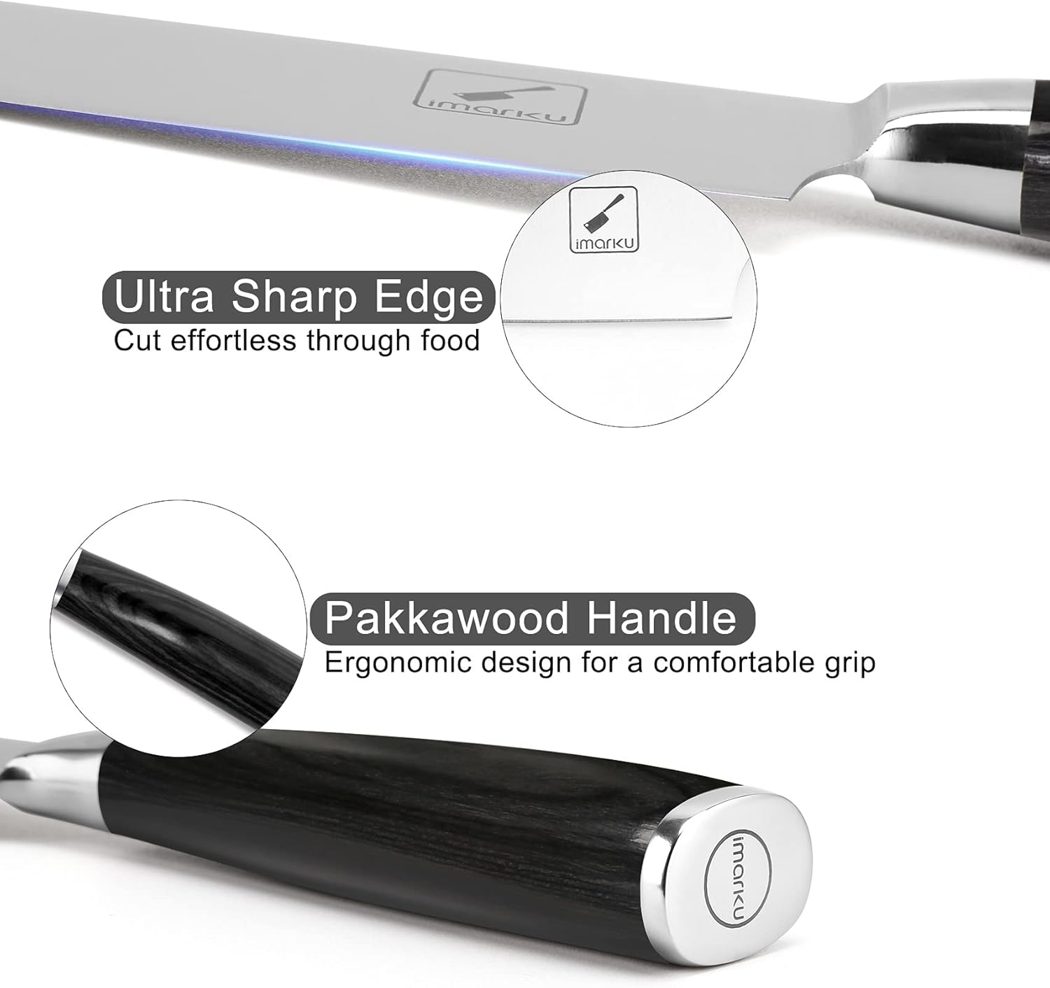 - Ergonomic pakka handle: To make it more professional and minimize any fatigue, finger numbness or aches after holding it continuously for an extended time the knife's handle is made from Pakka. This is material that originates from Africa and its known for its comfort; strength and stability