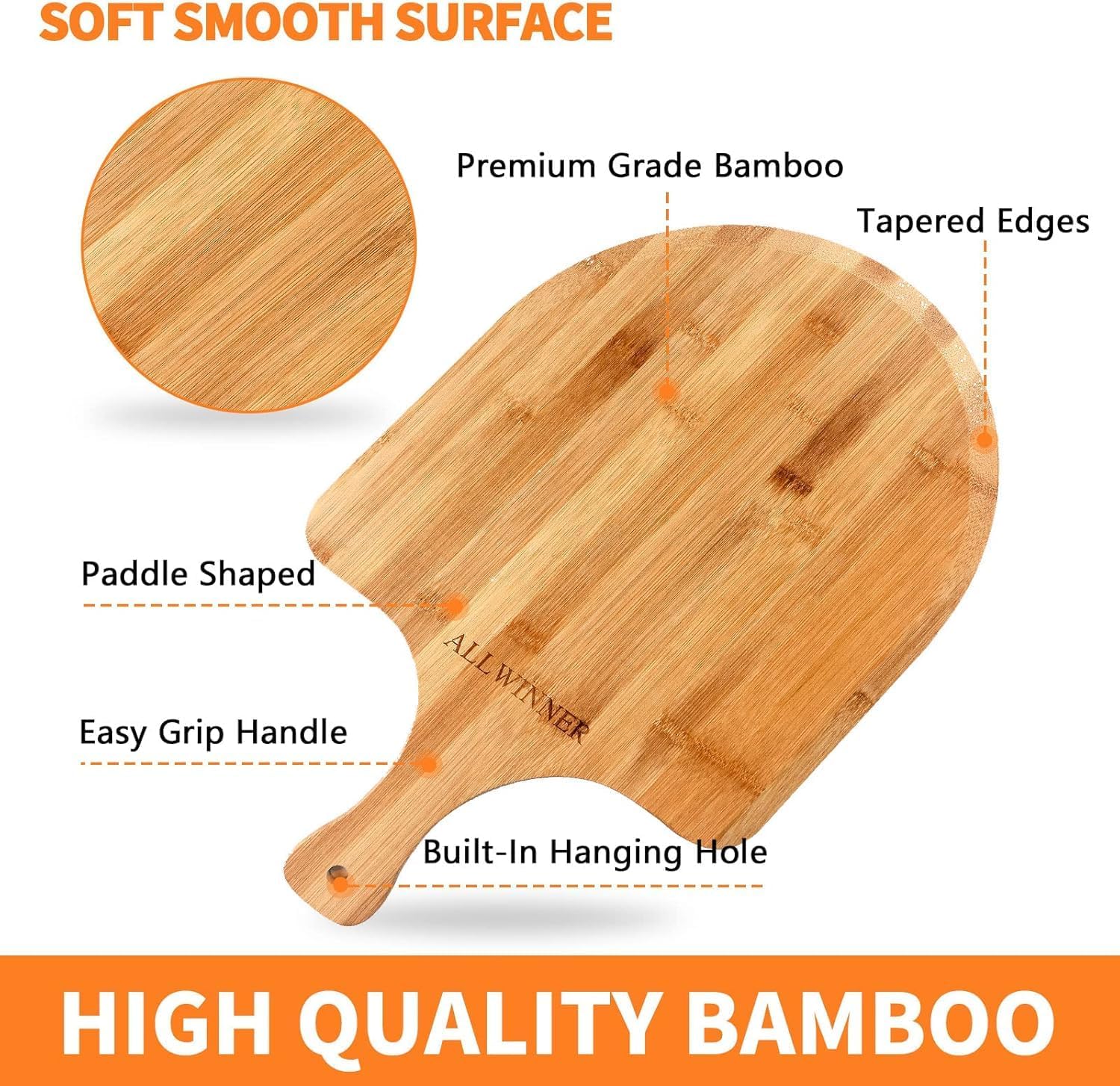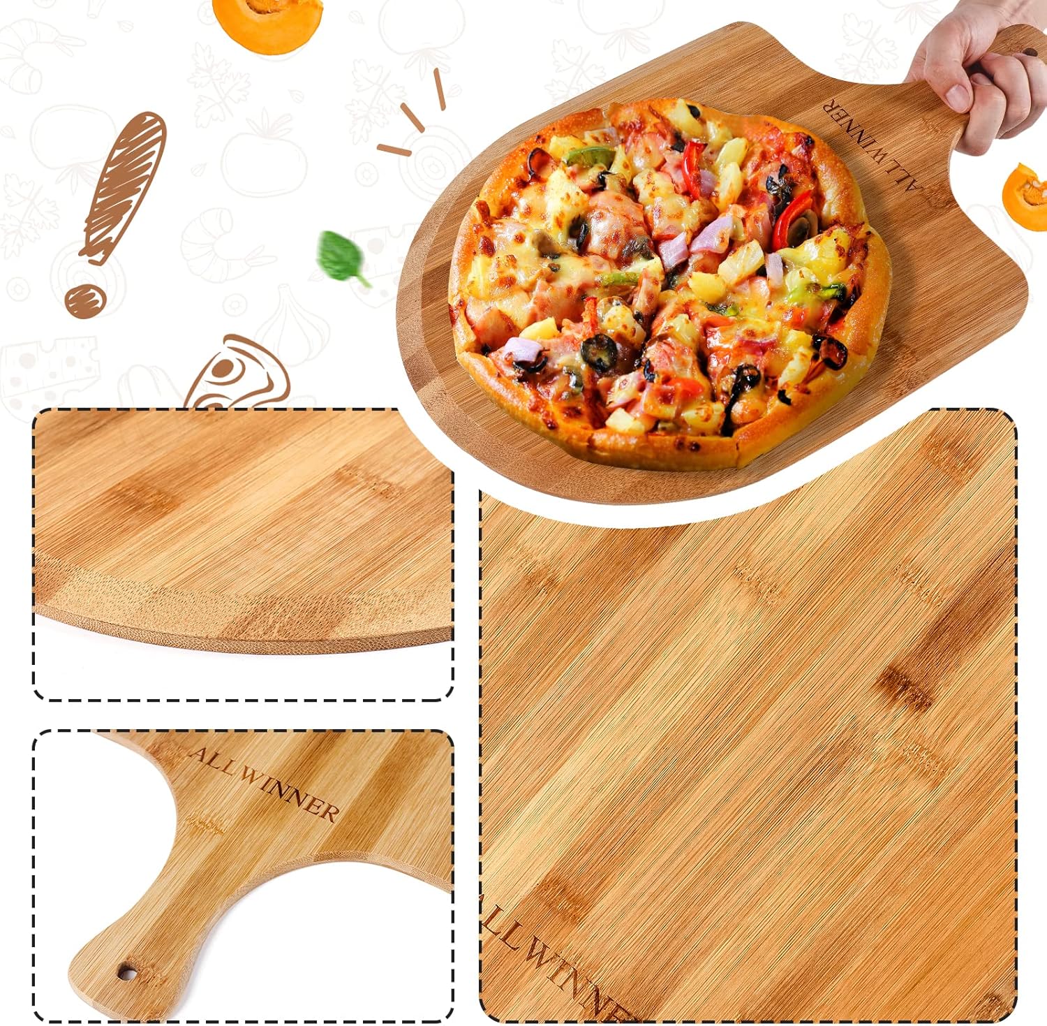 - HIGH-QUALITY BAMBOO PIZZA PEEL - For the consideration of healthier eating, we choose high quality bamboo to make our pizza peel, which separates our product from other pizza peels that crack, splinter, and some of them have a strange odor; free of artificial coating, non-toxic and eco-friendly, use this pizza paddle and enjoy a better pizza time