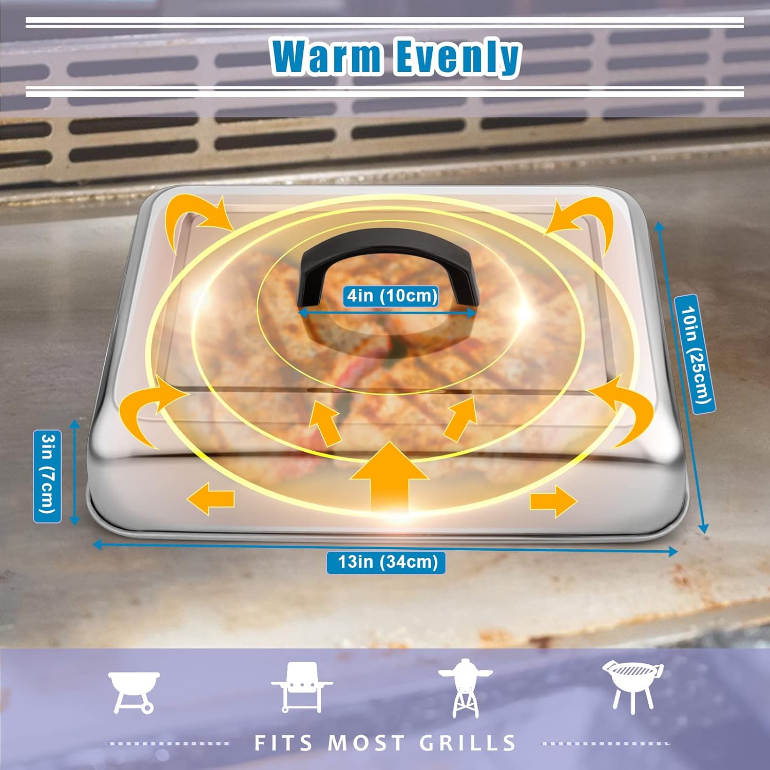 HaSteeL Rectangular Basting Cover, Stainless Steel Cheese Melting Dome Steaming Cover Lid, Heavy Duty Griddle Grill Accessories for Flat Top Teppanyaki BBQ Kitchen Indoor & Outdoor, Dishwasher Safe